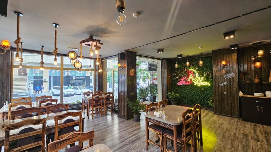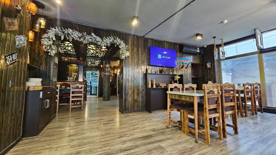Obyekt yeni təmirdən çıxıb 155 m2 qeyri yaşayış sahəsi var. Mətbəx, 3 kabinet,2 sanitar qovşaq, ərzaq anbarı, işçilərin soyunub geyinmə otaği, böyük bir zal hissədən və səhnədən ibarətdir.. Ümüm 14 stol zalda 3 kabinetlərdə cəmi 17 stol var. Elkiper aparati ümümi 4 televizor,4 kondisoner, 8 ədəd kamera 3 ədəd soyuducu, qab-qacaq hamısı icarəyə daxildir.
