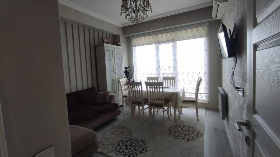 Mənzil 20 mərtəbəli binanın 16-cı mərtəbəsində yerləşir. Ümumi sahəsi 50 m²-dir. Tam təmirli və səliqəli vəziyyətdədir. Yaşayış üçün bütün zəruri məişət avadanlıqları və mebellə təmin olunub.