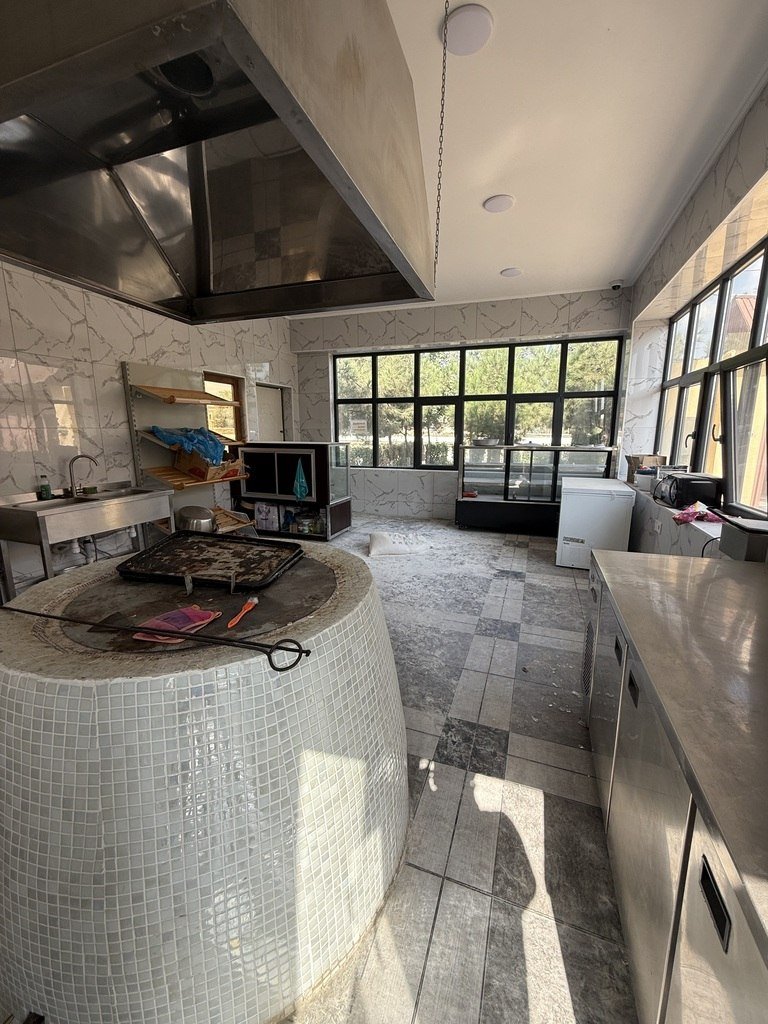 Torpaq erazinin icinde 2 eded tikili var, kafe ve tendirxana kimi fealiyyet gosterib. 1 ci tikilinin erazisi 60kvadrat metr. Burda kure ve tendir var. Diger tikili 100 kvadrat metr: zal ve 3 kabinet var. Su, isig, qaz var. 3 faza isig var. Qarant şəhərciyinin yanı.