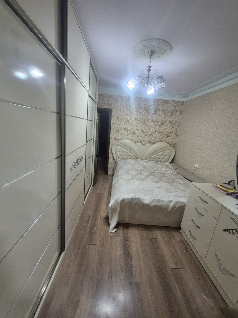 Xetai rayonu,Hezi Aslanov metrosuna yaxin,qanuni 2otaq amma 3otaqliya duzeldilmis orta temirli menzil satilir.Bina Kiyev layihesi uzerinde tikilib,menzil eksperimental layihedir.Metbexi boyukdur.1eyvani var.Mektebe 5 deqiqelik mesafede yerlewir.Binanin arxa terefinde avtobus dayanacagi var.Menzilde qaz,su,iwiq daimidir.Wifi var,kondisioner var,musterinin isteyine uygun qala biler.Ev kupcalidir.