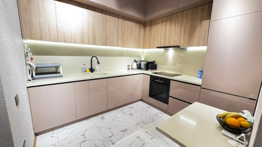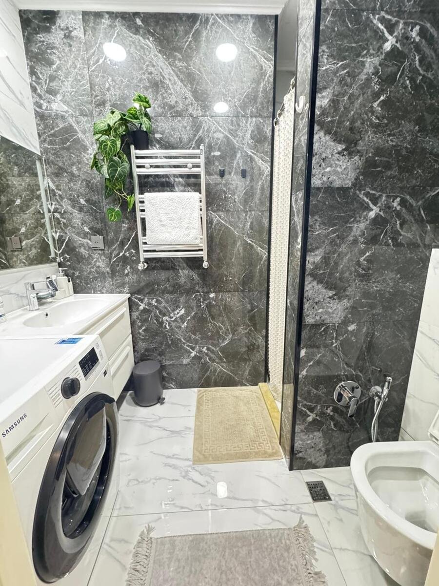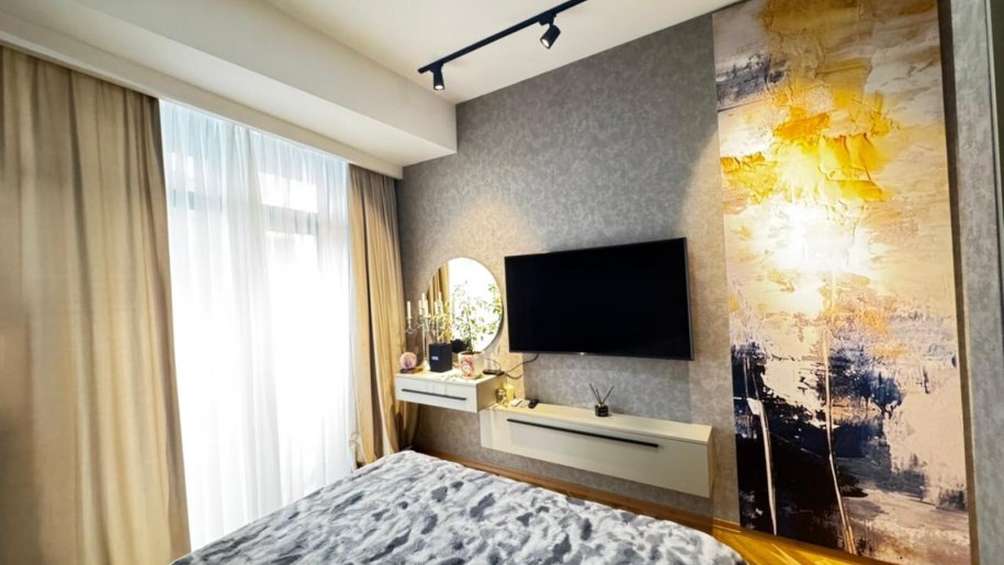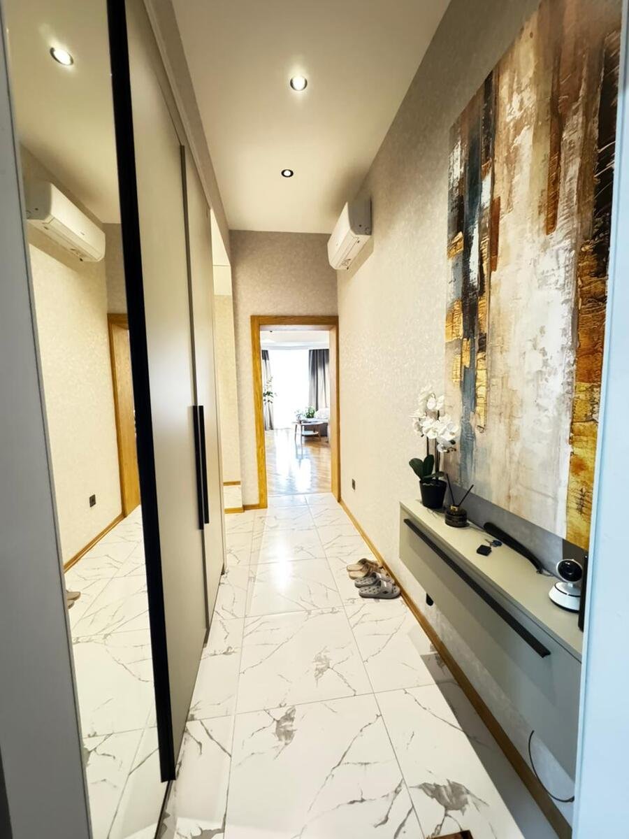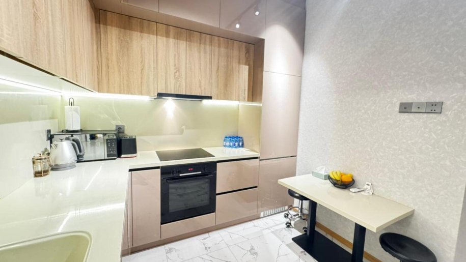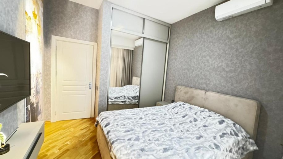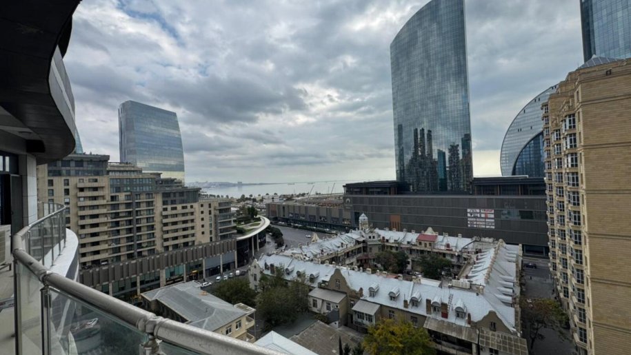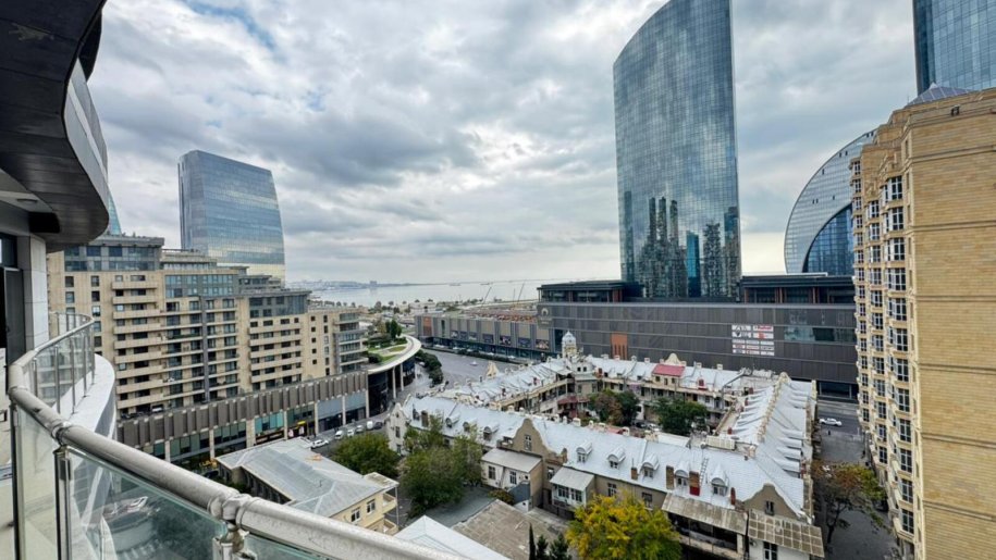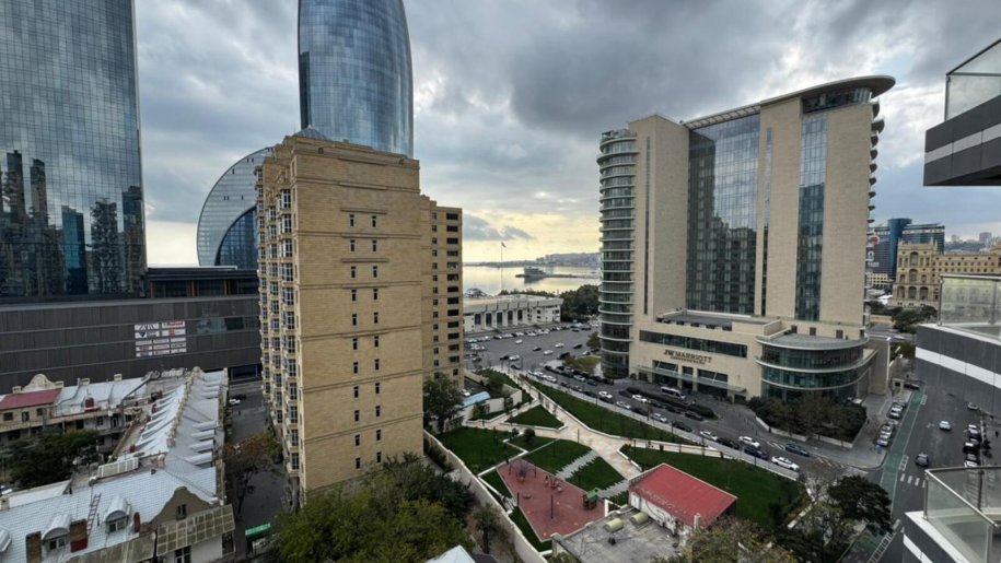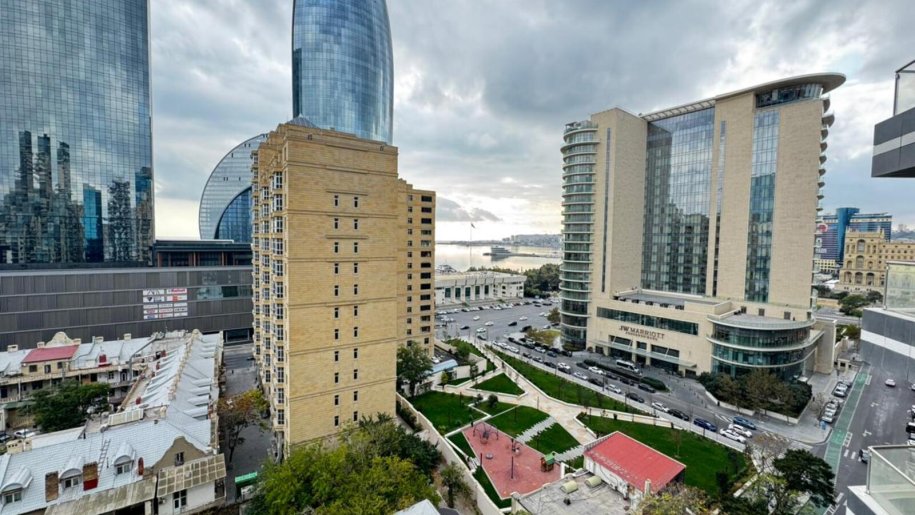 Close to PORT BAKU an elite residential complex 2 -rooms apartment for rent with amazing city view. The apartment is equipped with everything necessary for a comfortable stay. Heating, split air conditioning, washing machine, internet, etc. 24/7 security.