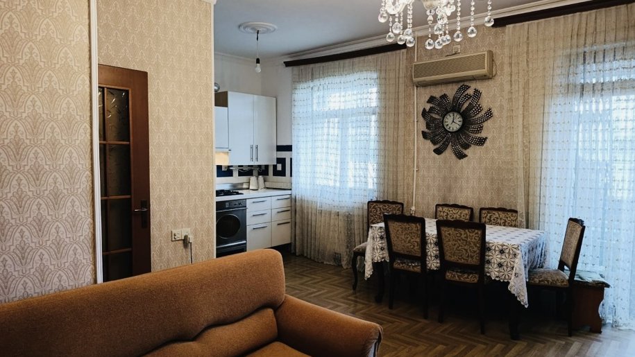 Seherin merkezinde Axundov baqinin yaninda Iceri weher metrosuna piyada yuruw mesafesinde Stalinka layiheli binada tam temirli resmi 3 otaqli menzil satiwa teqdim olunur.Menzil yelcekendir otaqlar ayri isdiliy sisdemi konbi iki eyvani var biri heyete digeri Nizami kucesine baxir.Sekiller menzile mexsusdur etrafli melumat ucun elaqe saxliya bilersiz wirketin xidmet haqqi 1% tewgil edir.