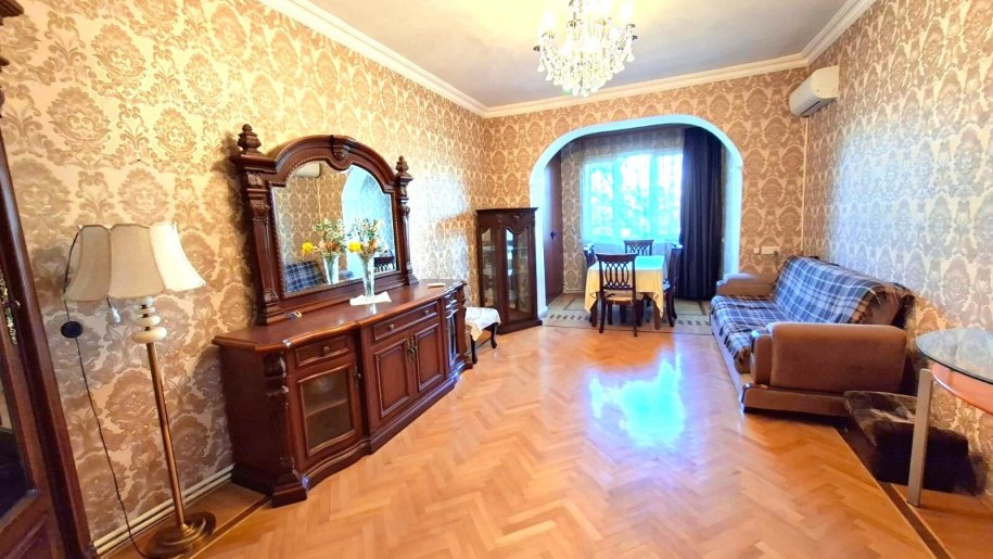Nərimanov metrosunun çıxışında, ən gözəl yerində, “klassik stalinka” layihəli, yaxşı təmirli olan, qanuni 3 otaqlı mənzil satılır. Otaqların girişi ayrı-ayrıdır, 2 eyvanı var, mənzil yelçəkəndir, döşəməsi parketdir. Mənzil orta blokda yerləşir. Əşyaları ilə birgə satılır. Geniş və sakit həyəti vardır. ( Ofis haqqı 1% )