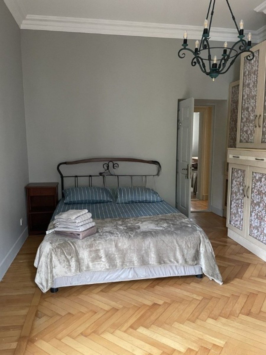 Высокие потолки, паркет, большая гостиная, светлые спальни и просторная ванная комната.