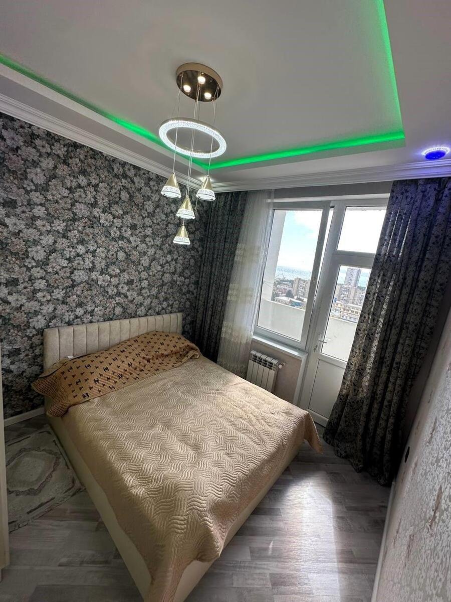 2 otaq mətbəxt studiyadir, kombi, əşyalı , paltaryuyan var , əla təmirlidir, əla baxış dənizədir , eyvanı var , qiyməti 550 AZN + 50 AZN Kamendant pulu , ailəyə , problemsiz xanımlara verilir və s.