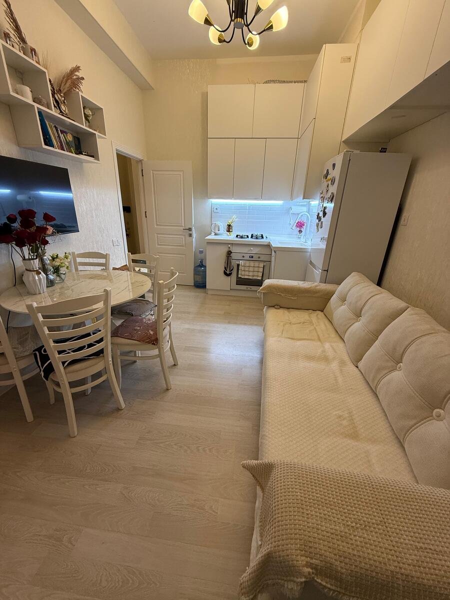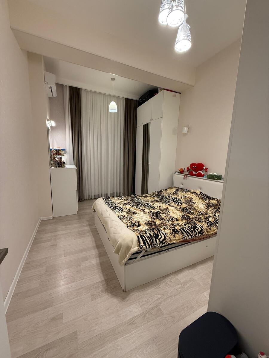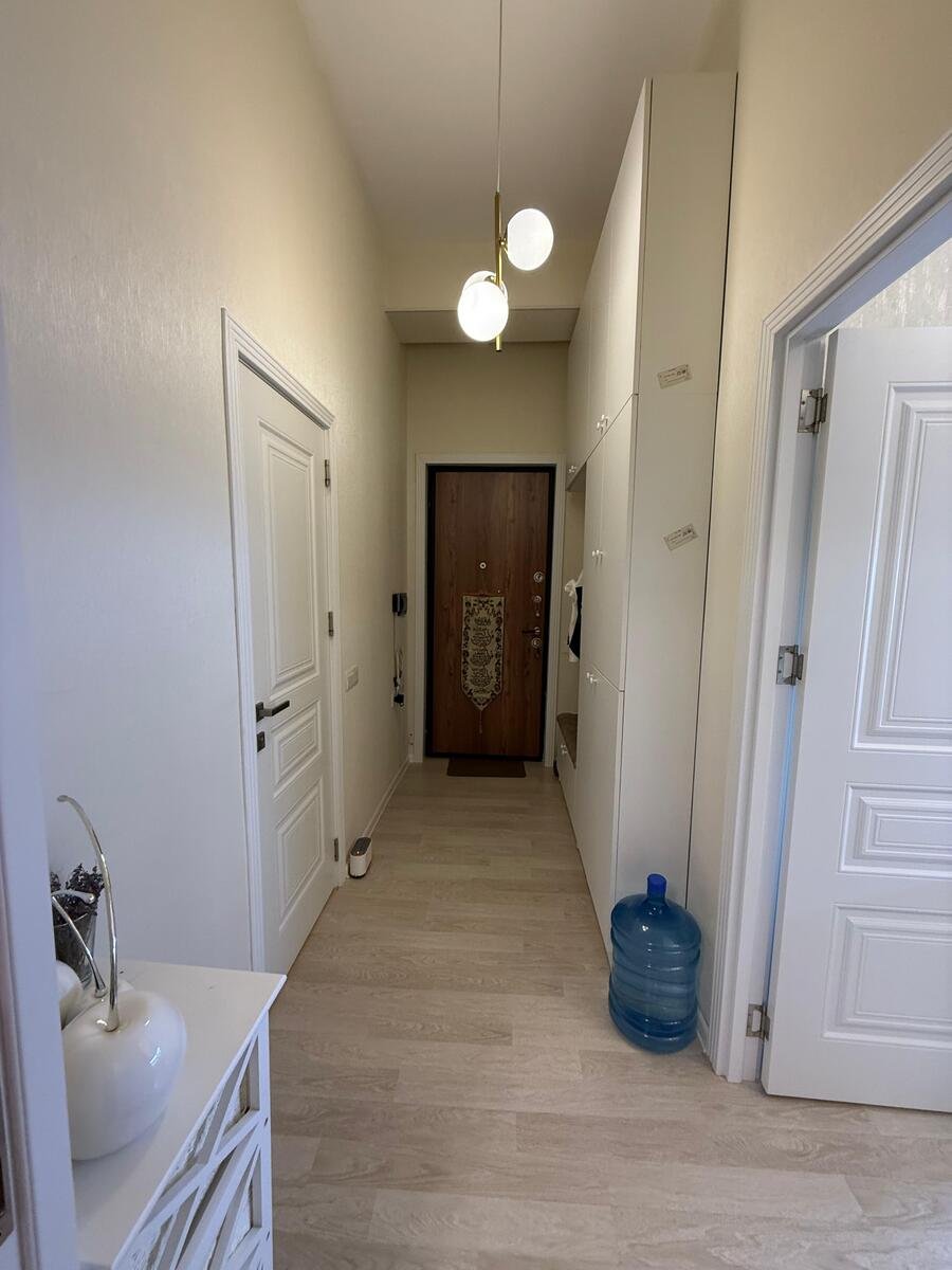Təmirli, əşyalı. Televizor, 2 kondiaioner, kombi sistemi, mebellər, qaz peçi, soyuducu, paltaryuyan və s bütün əşyalar ilə birlikdə satılır. Tavanın hündürlüyü 3,30