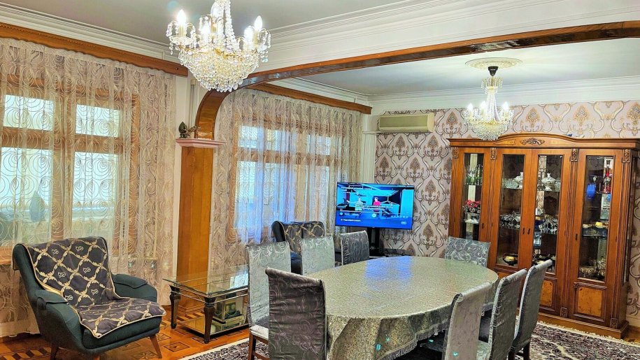 Qara Qarayev Metro Stansiyasinin tam cixisina yaxin arazida,Bes otaqli manzil satisa cixarildi,Bina Leninqrad Lahiyyalidir,manzil binanin orta blokunda yerlasir va skvaznoydur,manzilda iki otagin ara divari goturulub va dord otaqliya cevrilib,manzilda butun girislar ayridir,manzilin polu mazayka parketdir,manzilda istilik markazidir,manzilin tamiri yaxsidir,manzil asyalarla birlikda satilir,manzilin sanadi KUPCA.