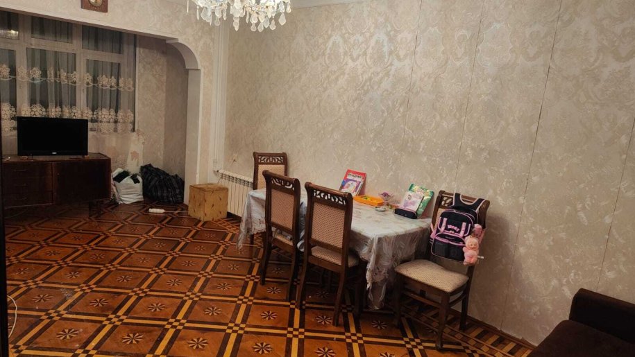 Yeni Guneslide 9 mertebeli binanin 7-ci mertebesinde sahesi 90 kvm olan 3 otaqli menzil kirye verilir esyali qaz su isiq diami xidmet haqqi 30 %