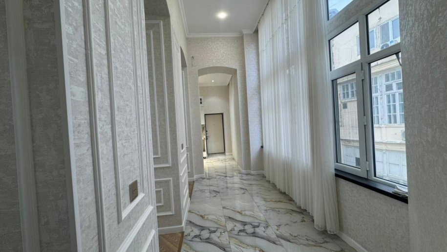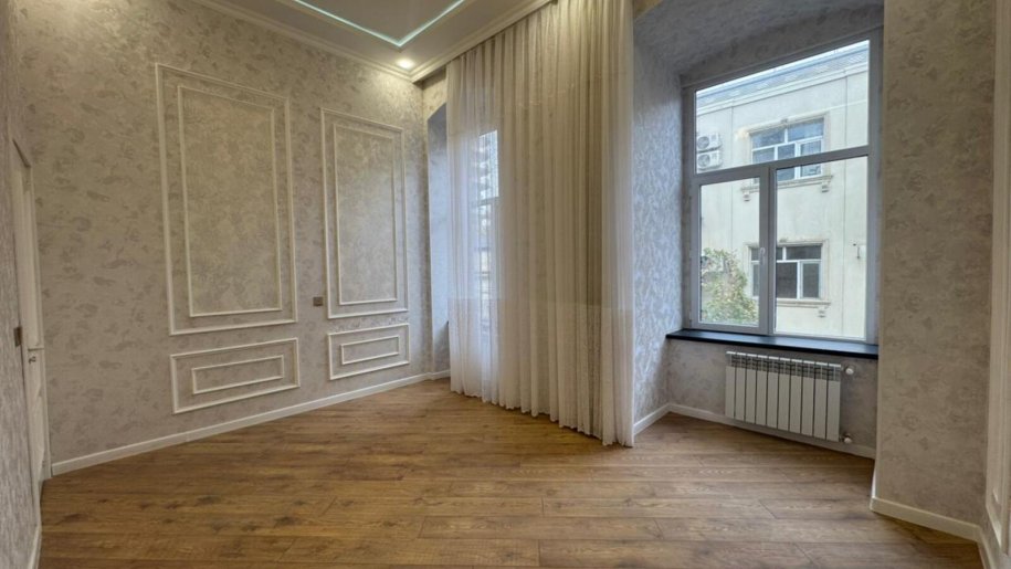 Rəşid Behbuov küçəsində, dörd mərtəbəli memarlıq üslubuna malik, xüsusi layihə ilə inşa edilmiş tarixi-arxitektura binasının üçüncü mərtəbəsində yerləşən bu 5 otaqlı, 200 m²-lik geniş və tam super təmir olunmuş mənzil, komfortu və zövqlü interyeri ilə seçilir.