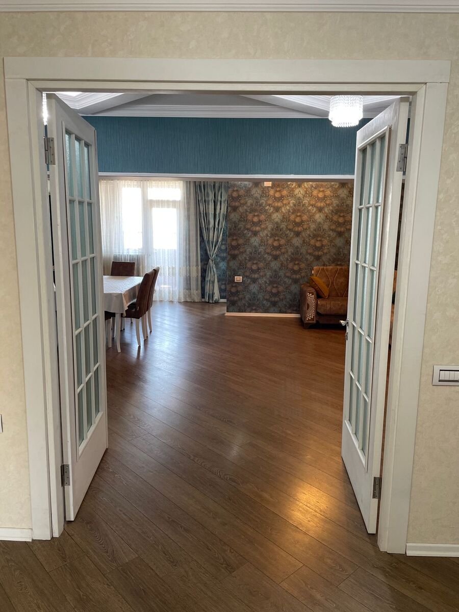Ünvan: Nərimanov rayonu Əliyar Əliyev 8 akkordun binası. Sahəsi 111k.m. Mənzilin dənizə panaraması var. 2 balkonu var, biri dənizə və şəhərə gözəl mənzərəsi o biri isə həyətə baxır. Binanın 3 sürətli lifti kartla, kameraları, mühavizəçiləri, öz həyətində parkı və uşaq meydançası var. Mənzildə yaşayış üçün bütün əşyalar var: kombi, ariston, smart televizor, wifi, domofon, kondisioner, paltaryuyan, qabyuyan, mikravalnovka, txovka, elektrik çaynik, qab-qaşıq və s. Su, qaz, işıq daimidir.