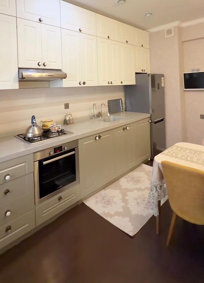 Mətbəx mebeli, bahalı hamam aksesuarları quraşdırılıb.