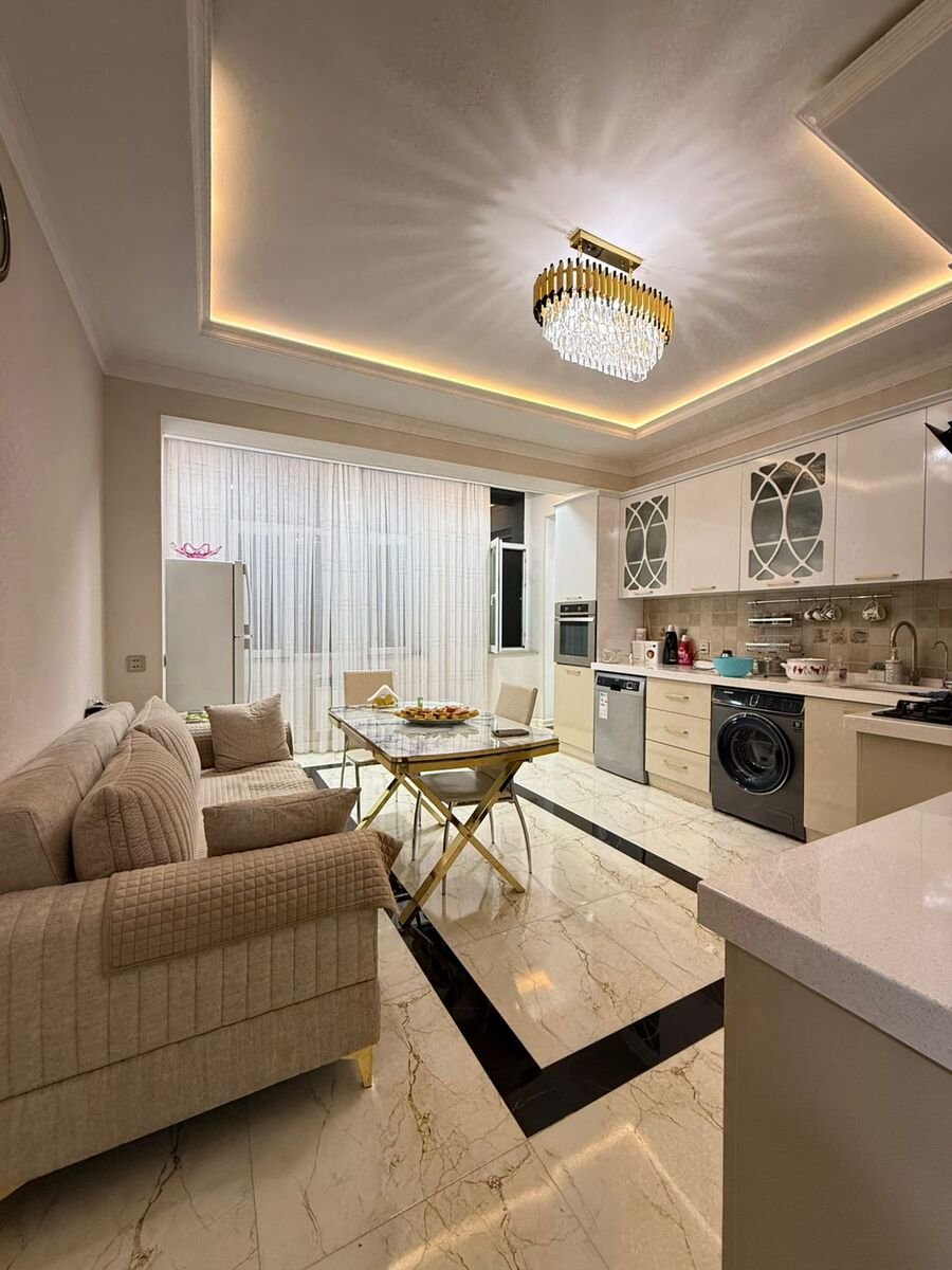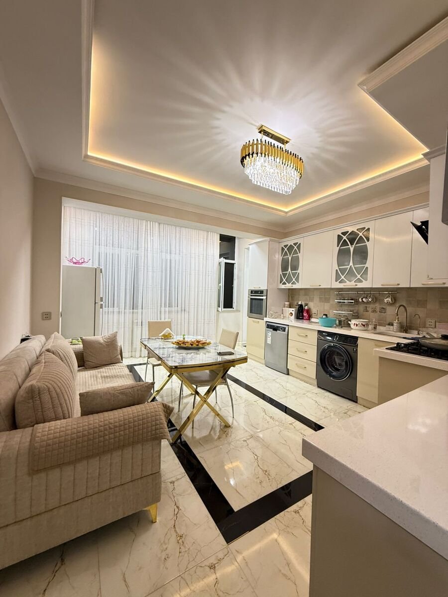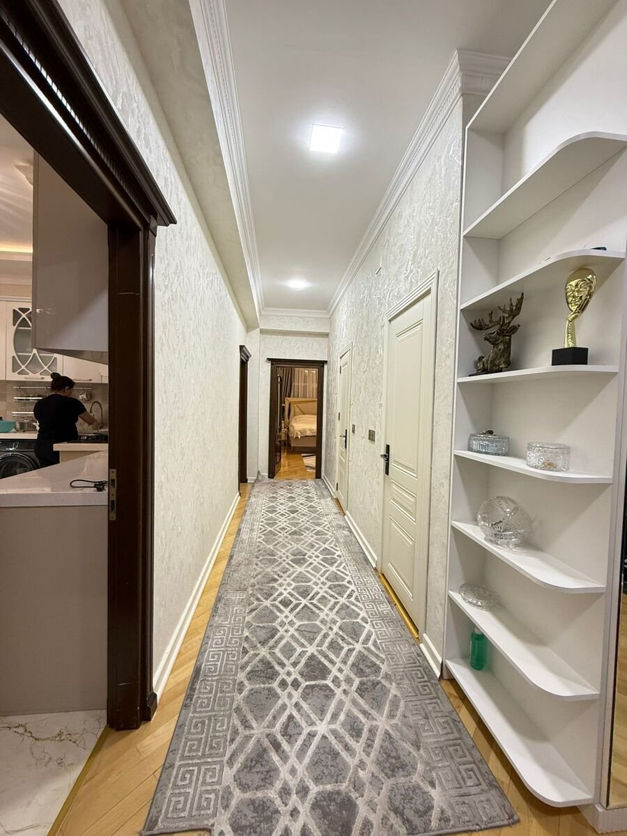 Yeni tikili 16 mertebeli binanin 4cu mertebesinde qanuni 3 otagli tam temirli və əşyalı mənzil satılır