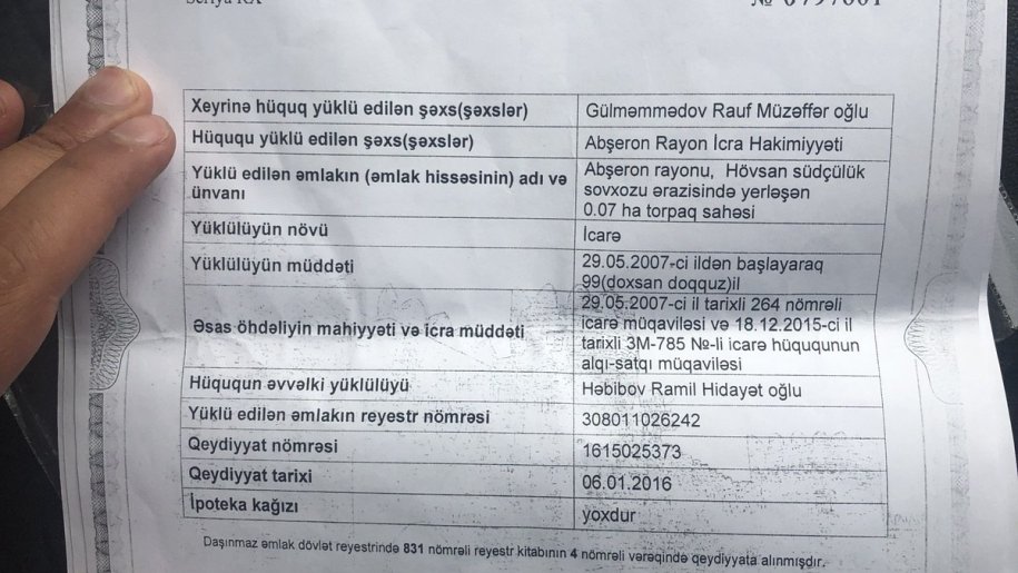 Torpaq 3 sotda binə savxoz ərazisində yerləşir.yolu asfaltdır .kamunallar var.