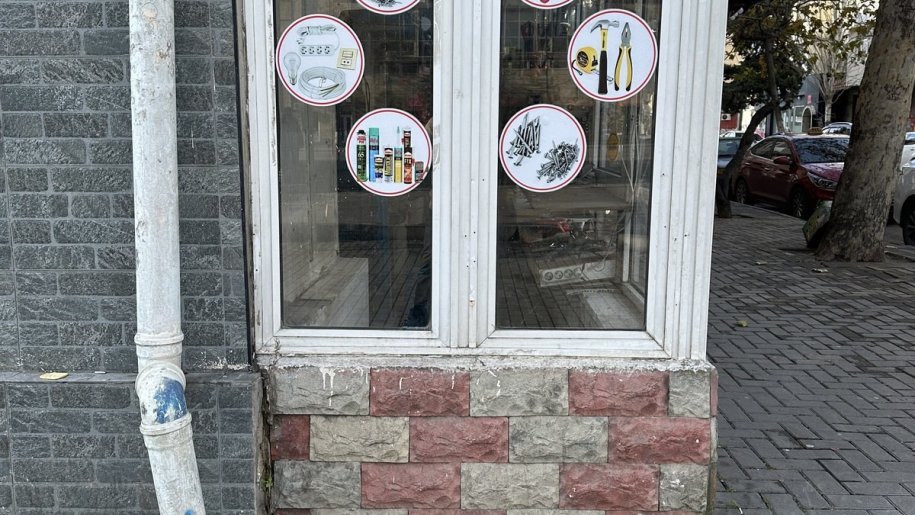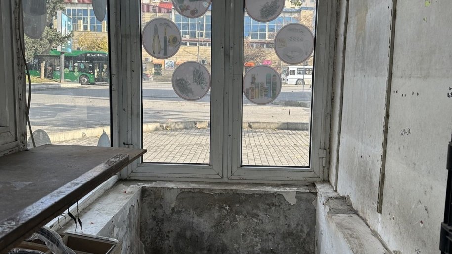 Obyektin girisi magazanin icindendir esas kuceye penceresi var
