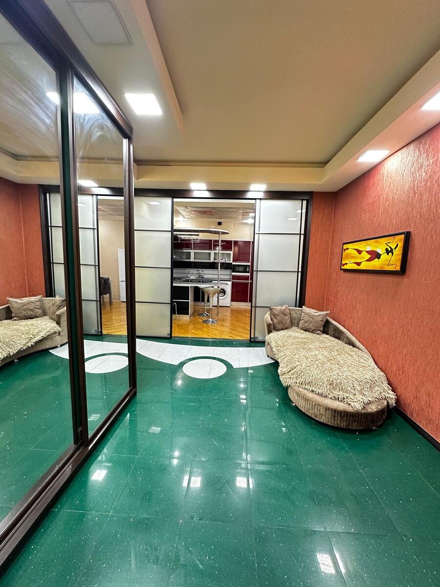 Şəhərin mərkəzində 28 May metrosuna ve Nizami metrosuna yaxn Deniz kenari Bulvara yaxn șehere cox gozel panaromasi olan 3 otaqli tam təmirli studio mənzil günlük kirayə verilir. Mənzil xarici qonaqlar ve ailələr üçün nəzərdə tutulub. Mənzildə yaşamaq üçün hər bir şərait var. Qaz,su,işıq daimidir. İstilik sistemi kombidir. Mənzil bütün avadanlıqlarla plazma tv,sürətli WI-FI internet,kondisioner,paltaryuyan,ütü,soyuducu,fen,yumşaq mebel təchiz olunmuşdur. Mənzildə qonaqların yaşaması ve istirahəti üçün bütün şərait var. Mənzilin kirayə qiyməti gün sayından və mənzildə yaşayan adamların sayından asılı olaraq 80_100 manat arasında dəyişir.