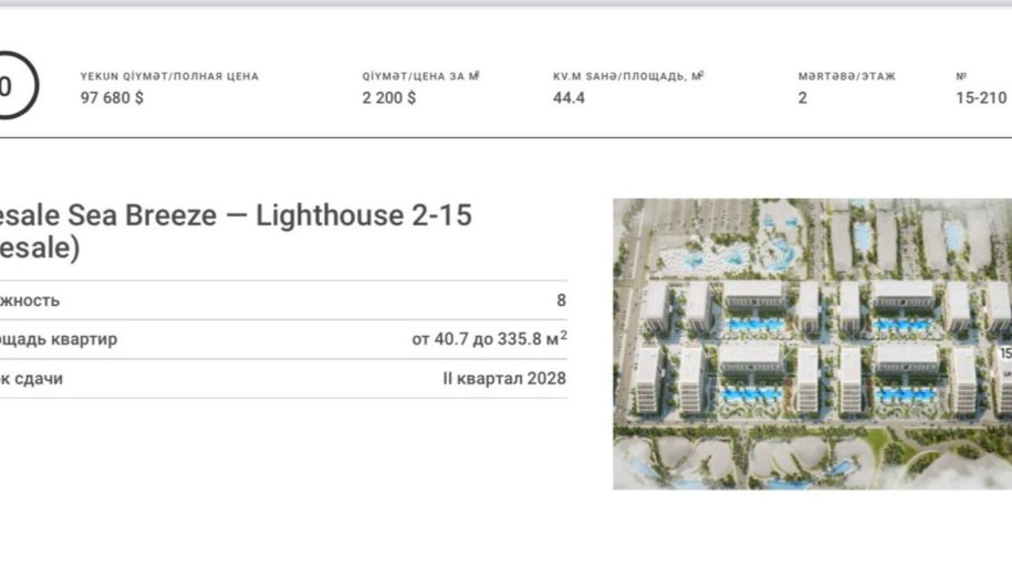 ✨ Sea Breeze Resort – Lighthouse 2-də Gələcəyinizə İnvestisiya! ✨