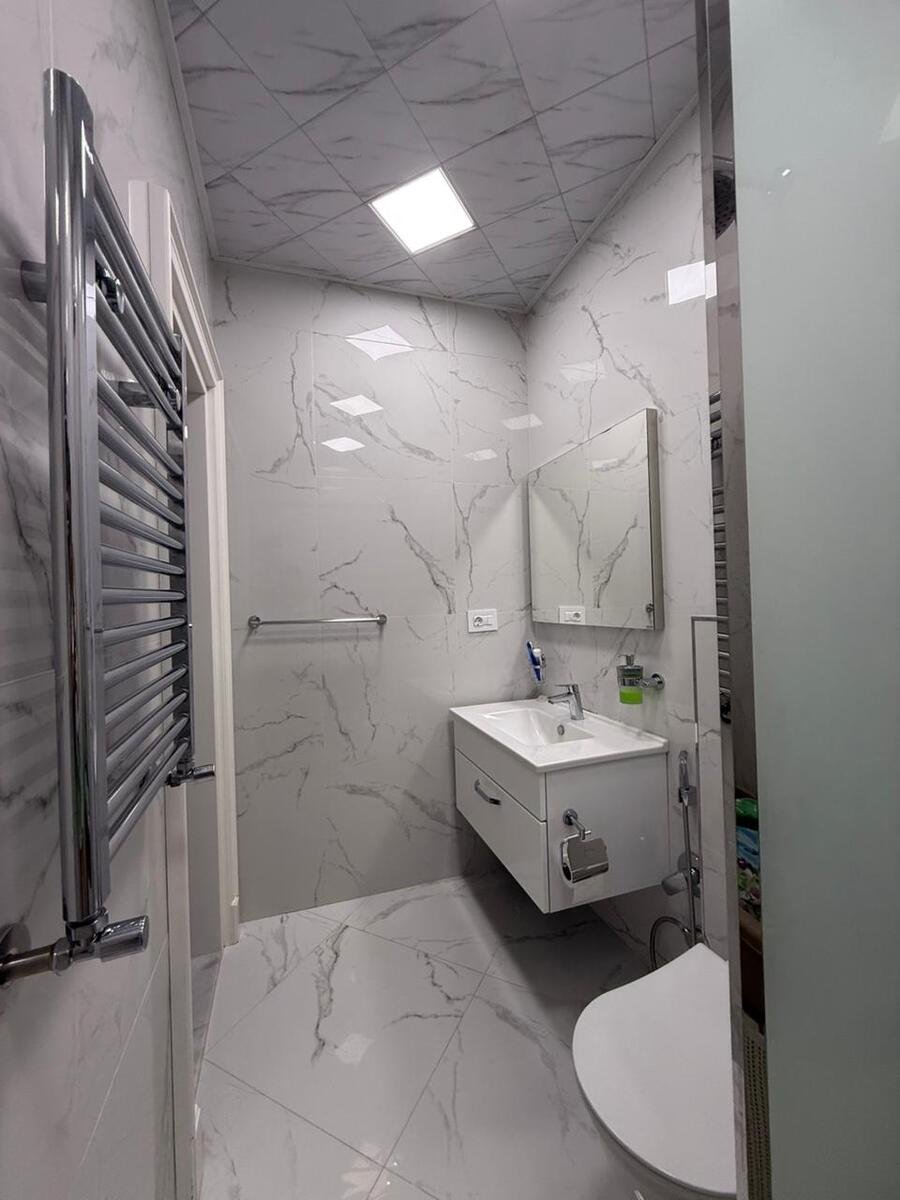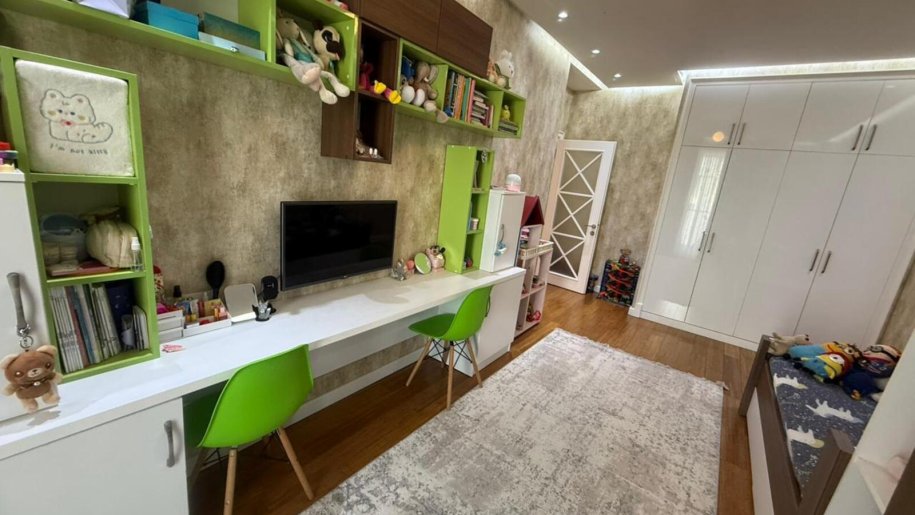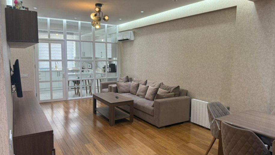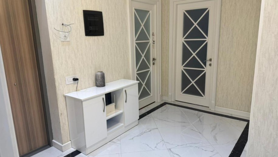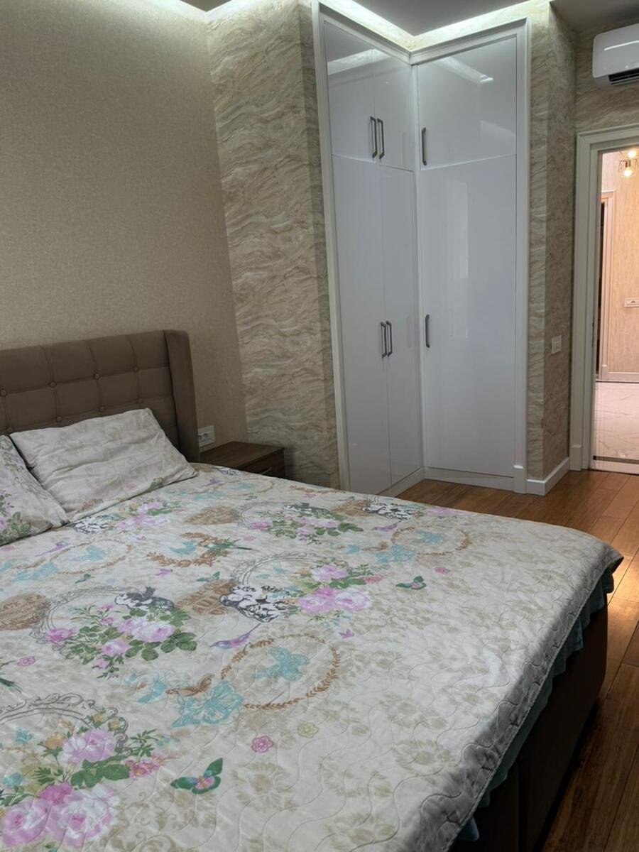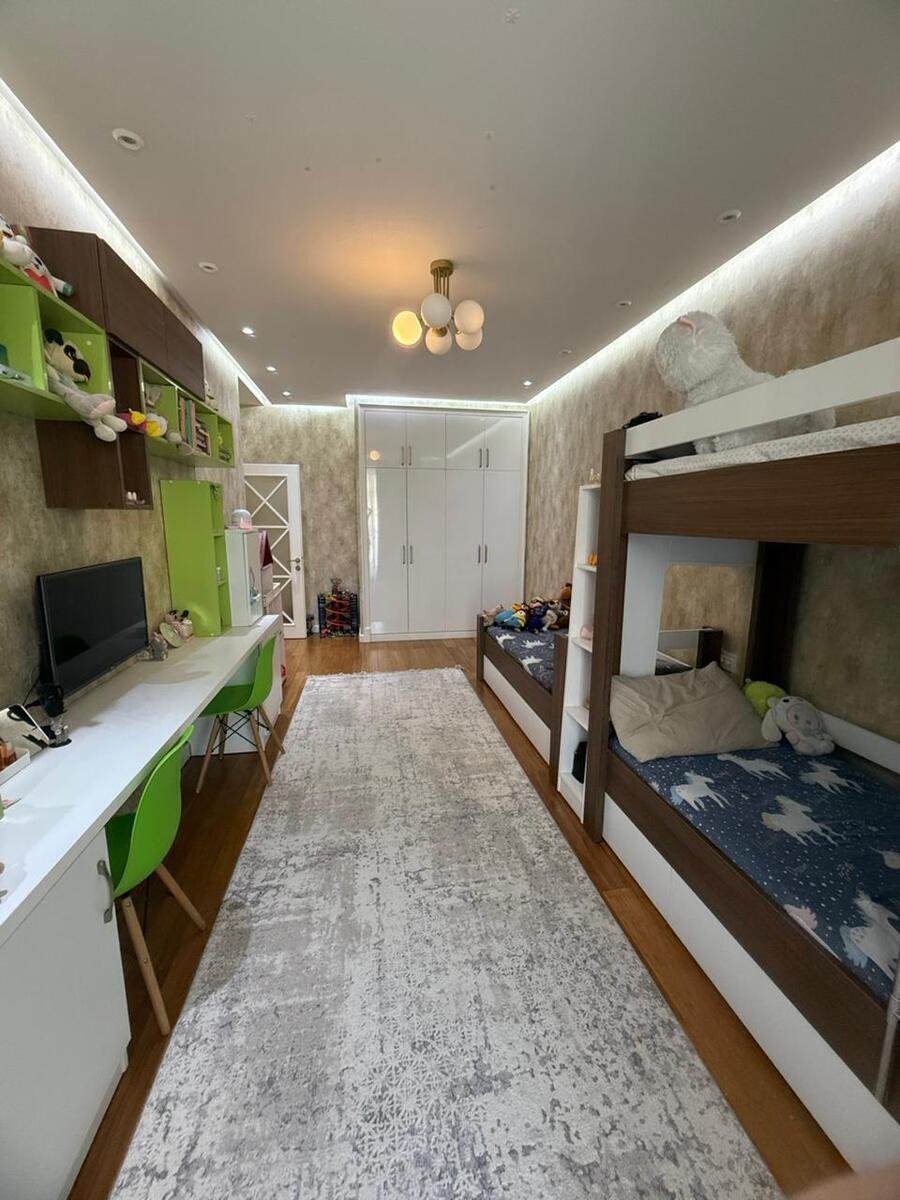 Mənzildə təmir zamanı keyfiyyətli və bahalı materiallarla aparılıb, qənaət edilməyib. İtalyan divar kağızları, bambuk döşəmə, dəhlizdə, mətbəxdə və sanitar qovşaqda “isti döşəmə” sistemi var. Mənzil bütün mebellə birlikdə satılır. Yalnız televizorlar, soyuducu, paltaryuyan, soba və mikrodalğalı soba götürüləcək. Ümumi sahəsi 98 m². Uğurlu planlaşdırma nəticəsində 3 otağa çevrilib, lakin geniş mətbəx və böyük qonaq otağı saxlanılıb. Uşaq otağı çox böyükdür, planı olduqca rahatdır. Hər otaqda kondisioner quraşdırılıb.