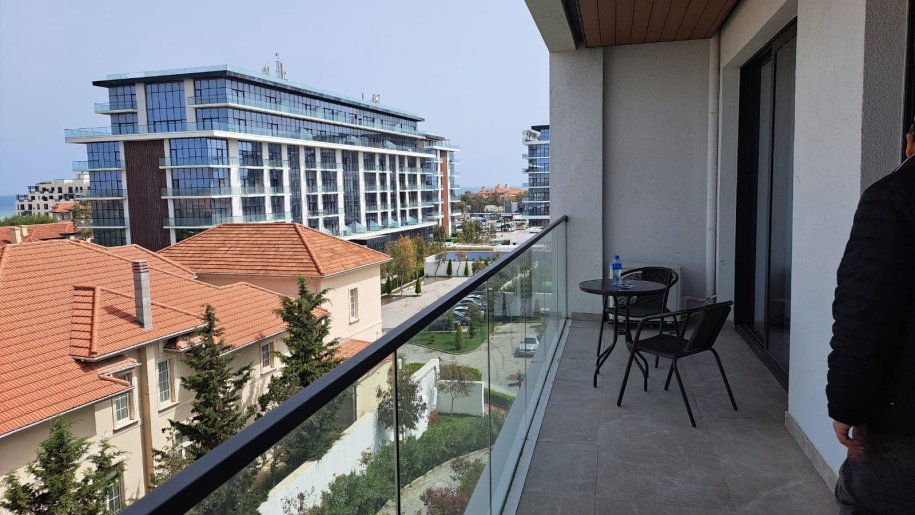 SEA BREEZE PARK RESİDENCE -1 4 mərtəbəli yeni tikili yaşayış binasının 4-cü mərtəbəsində ümumi sahəsi 100 kv.m olan 2 otaqlı əla təmirli,yüksək zövqlə dizayn edilmiş DƏNİZ MƏNZƏRƏLİ,tam əşyalı mənzil satılır.Təmirində bahalı mal-materiallardan istifadə edilib.Bütün mebel və texnika qiymətə daxildir.İnvestorlar üçün çox mənfəətli təklifdir.