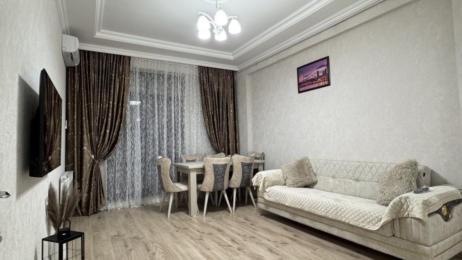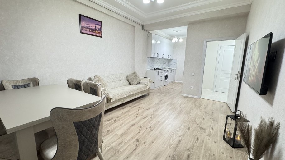 Sumqayit Beyaz Rezidens yasayis kompleksi 14/8 , 2 otaq studio menzil (75 kv.m) butun esya ve avadanliqlar yenidir, yasayis ucun her cur serait yaradilib yasayis olunmayib. Kompleksde 7/24 muhavize xidmeti, yeralti (2-metrebeli) ve yerustu parking, daimi qaz su elektrik, internet movcuddur. Evde soyuducu , paltaryuyan kondisoner-2 eded, televizor (Smart Tv) ve kombi ile techiz olunub hamisi yenidir. Ciddi olanlar elaqe yarada biler. Qiymet 550 azn + komendant pulu daxil.