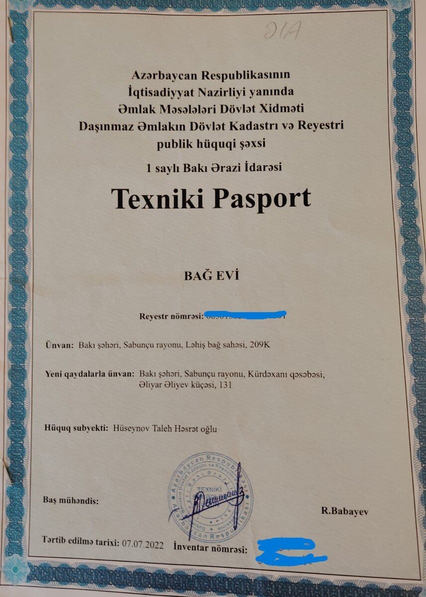 Sənədləri qaydasında. Qaz, işığ, su xəttləri çəkilib. Əlavə məlumat üçün zəng edin.