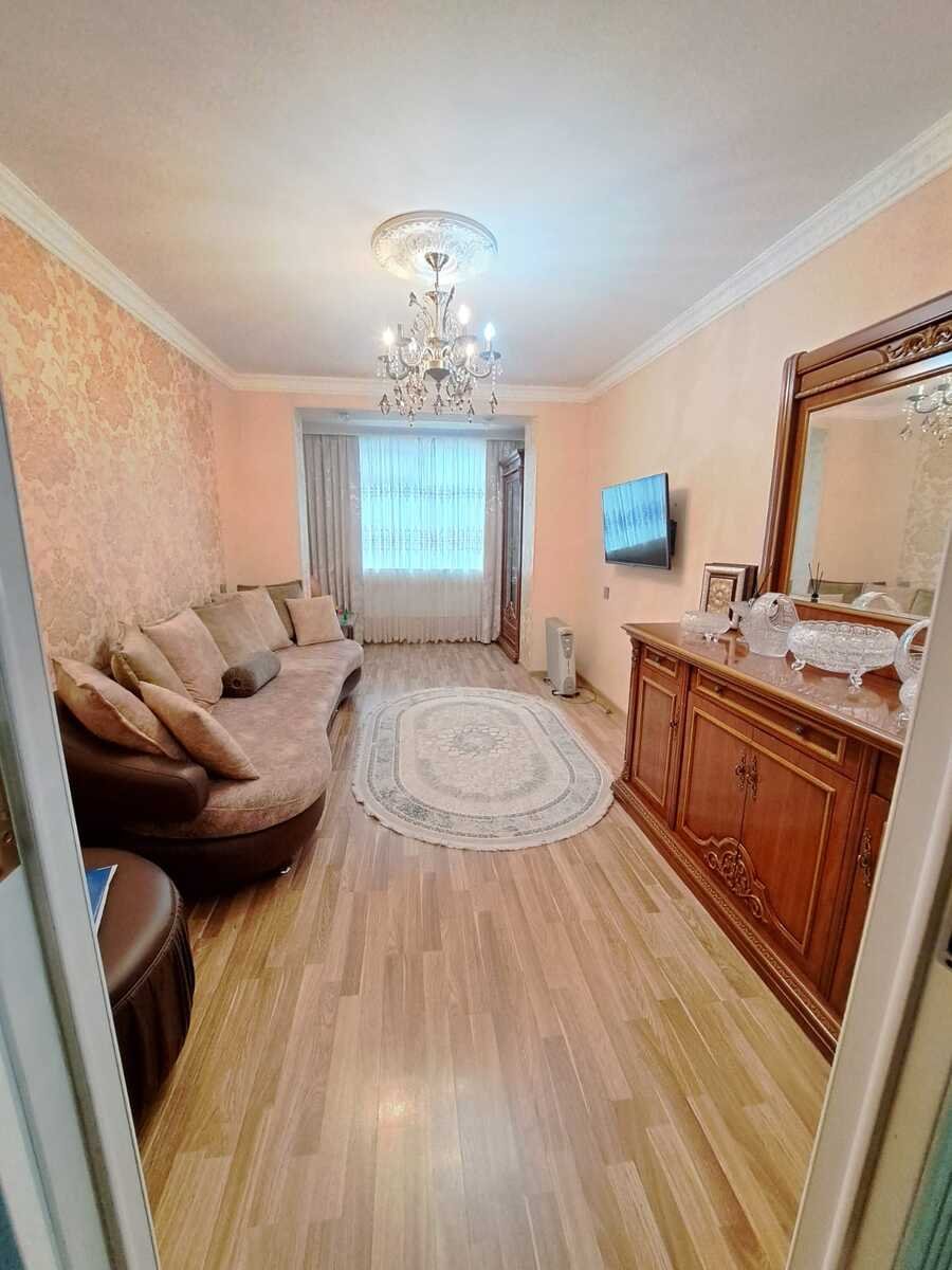 9-cu mkr, 5/4-cü mərtəbəsi, Leningrad-layihəsi, 7 metrlik balkon şüşəbənd, otaqların girişləri ayrı-ayrı, istilik sistemi kombi, bəzi əşyalarla birlikdə satılır. Tam təmirli evdir. Təcili satılır. Qiymət: 97.000azn Vasitəçi haqqı: 1,5%