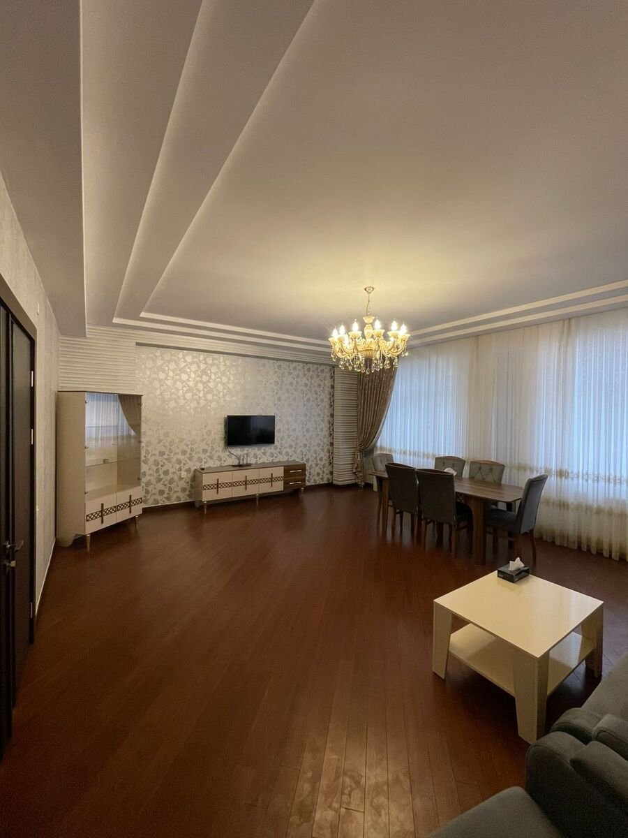В Наримановском районе, рядом с метро Гянджлик, возле ABU Arena, в жилом комплексе Crown City Residence, в новостройке сдаётся 3-комнатная квартира с супер ремонтом, полностью меблированная.