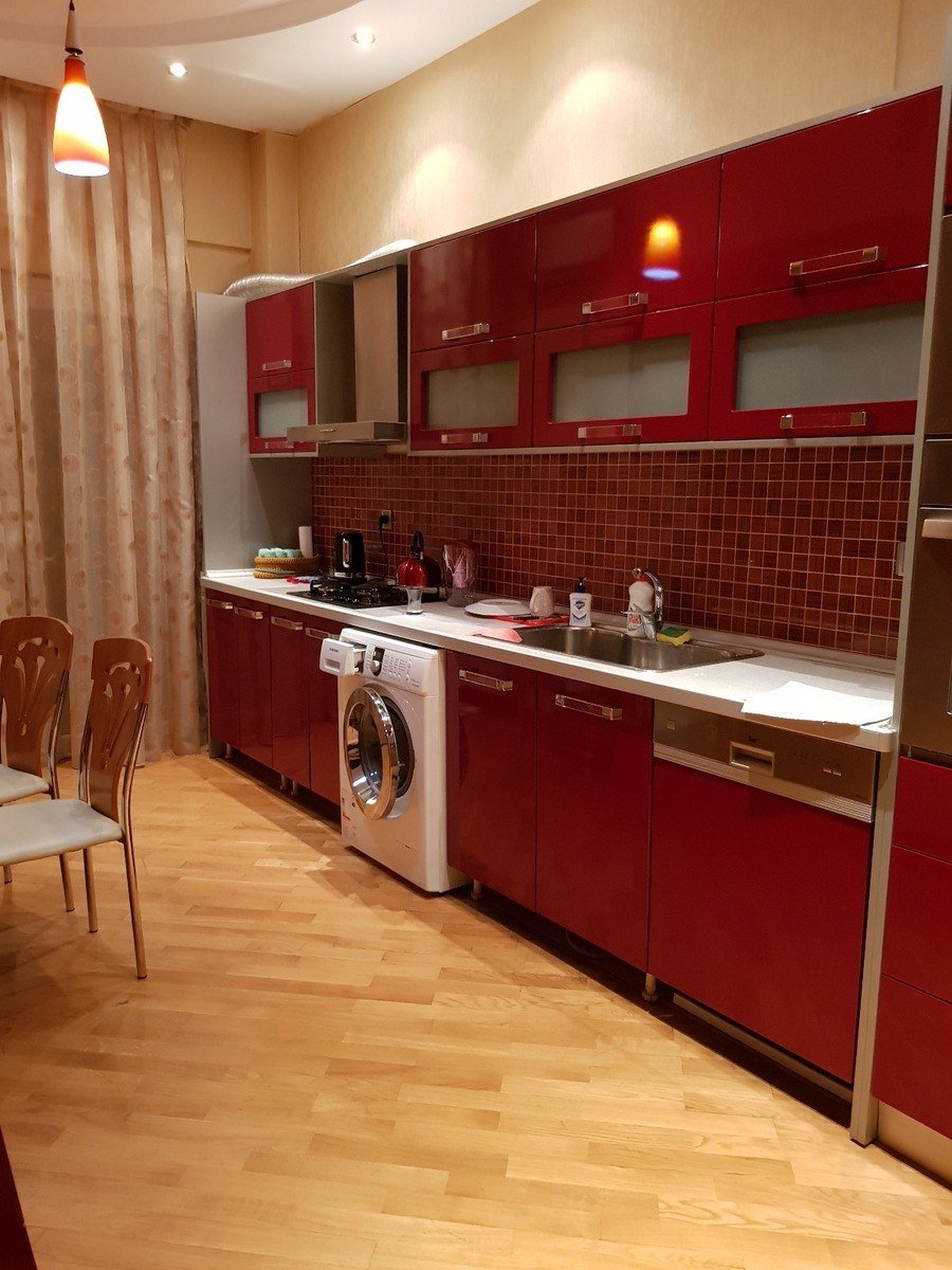 Mərkəzdə, R. Behbutov küç. Milli bankın yanında 2 otaqlı mənzil icarəyə verilir. Yeni tikili, sahəsi 90 kv.m. Böyük işıqlı otaqlar. Əla təmirli, hər şəraiti var,yumşaq qonaq otağı mebeli, yataq dəsti, mətbəx mebeli, paltar yuyan maşın, soyuducu, mikrodalğalı soba, split-kondisioner, TV plazma, KATV, surətli İnternet. Daimi isti soyuq su. S/q əla vəziyyətdə, duş kabina. 2 lift. Mühafizə olunmuş ərazi. Yaxınlıqda park, məktəb, uşaq bağçası, avtobus dayanacağı