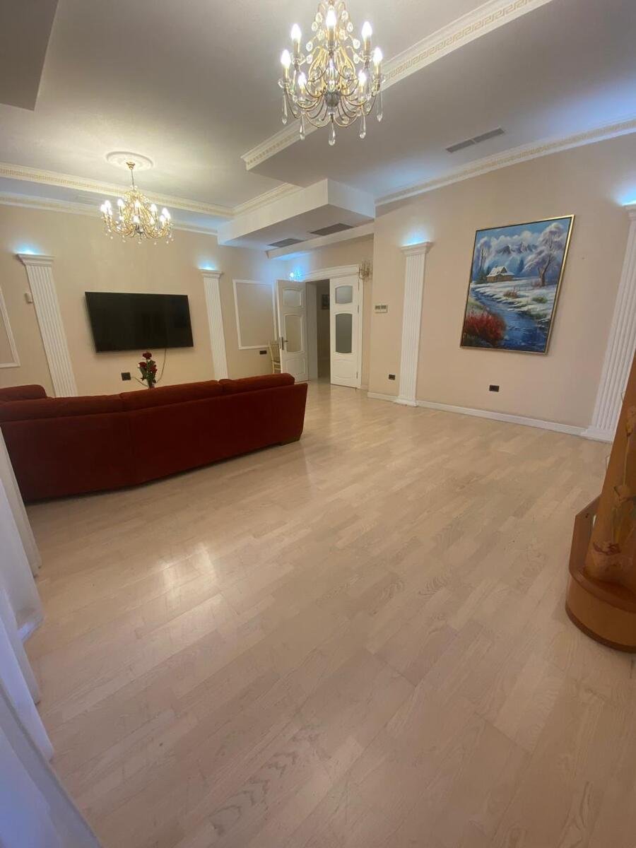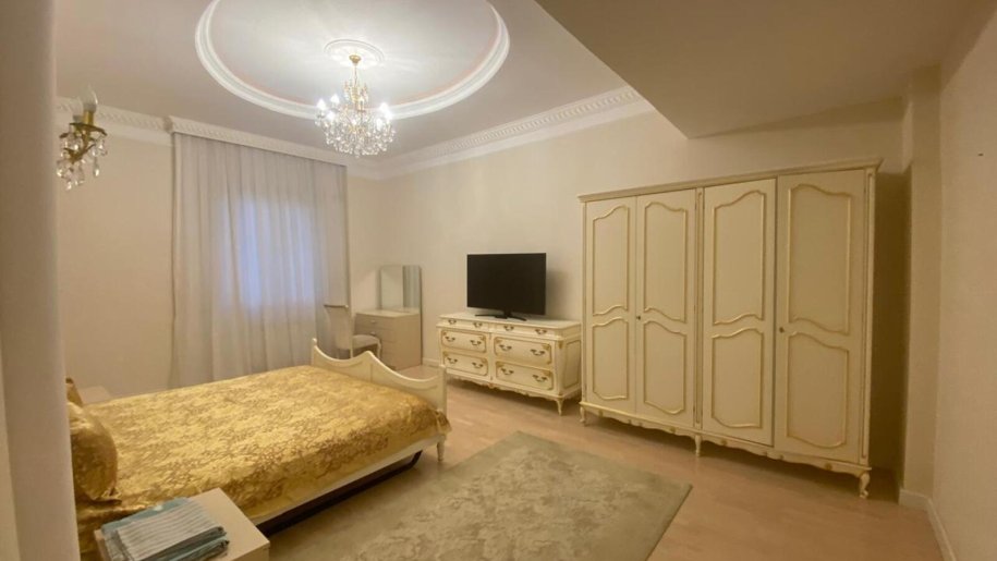 На 5-м этаже 16-и этажного здания, сдается, 4-х комнатная квартира, класса люкс. 1 гостинная+3 спальные комнаты+3 санузла. Гараж, Открытый и закрытые бассейны. Отдельный спортивный комплекс и др..