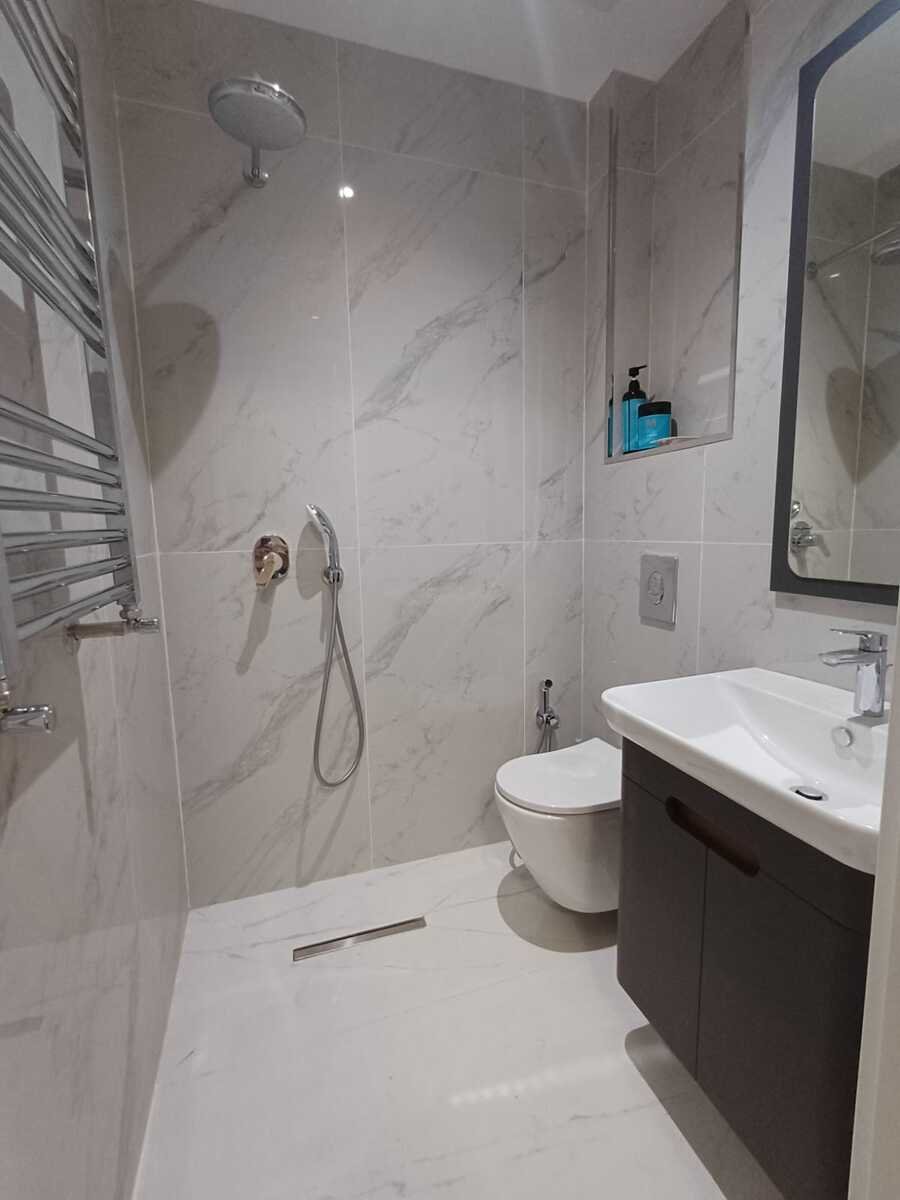 Mənzildə 2 sanitar qovşaq mövcuddur, onlardan biri birbaşa yataq otağında yerləşir ki, bu da əlavə komfort yaradır.