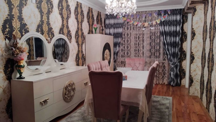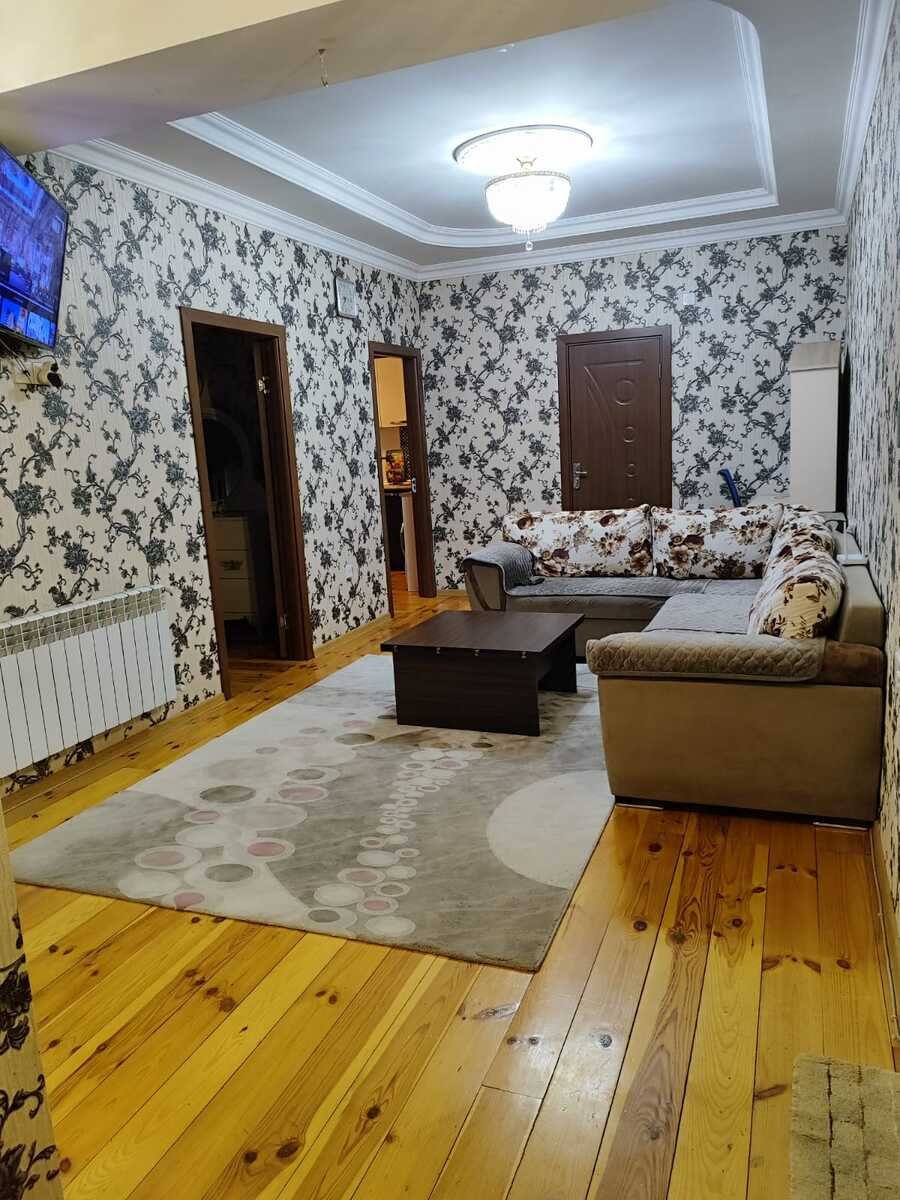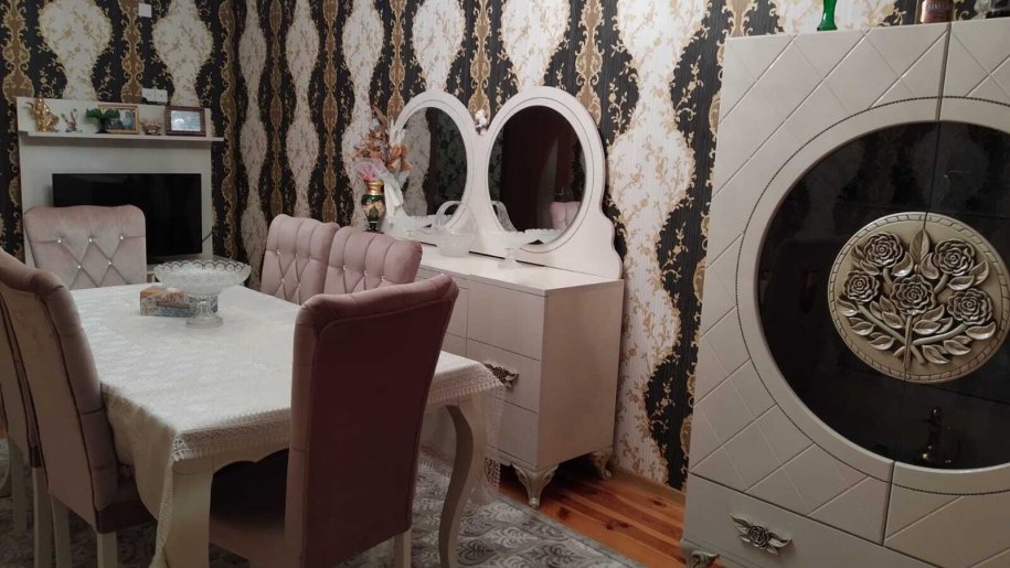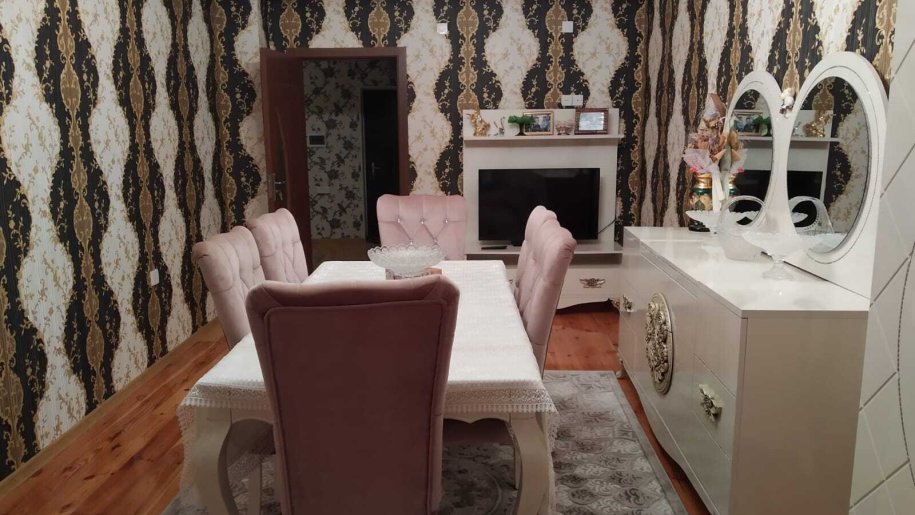 Ev Gence şeherinde Züqo şadlıq sarayının qarşısında yerləşir.3 otağa düzəlib.Her bir şəraiti var.Lifti işləyir.Eşyalı satılır.Qonaq,yataq,metbex mebelleri evde qalacaq.Elektronika götürülecek.Müqavile ile satmaq olur.Razılaşma yolu ile.Qazı,işığı,suyu vardır.Sanitar qovşaq isti poldur.Bir sözle gir yaşa.10 mertebelinin 9 cu mertebesindedir.Şeherin gözəl yerindədir.Her terefe yaxındır.Bütün marşrutlar keçir.Mektebe,bağçaya,Beynəlxalq xestexanaya,markete yaxındır.Müqavile ile satmaq olur.