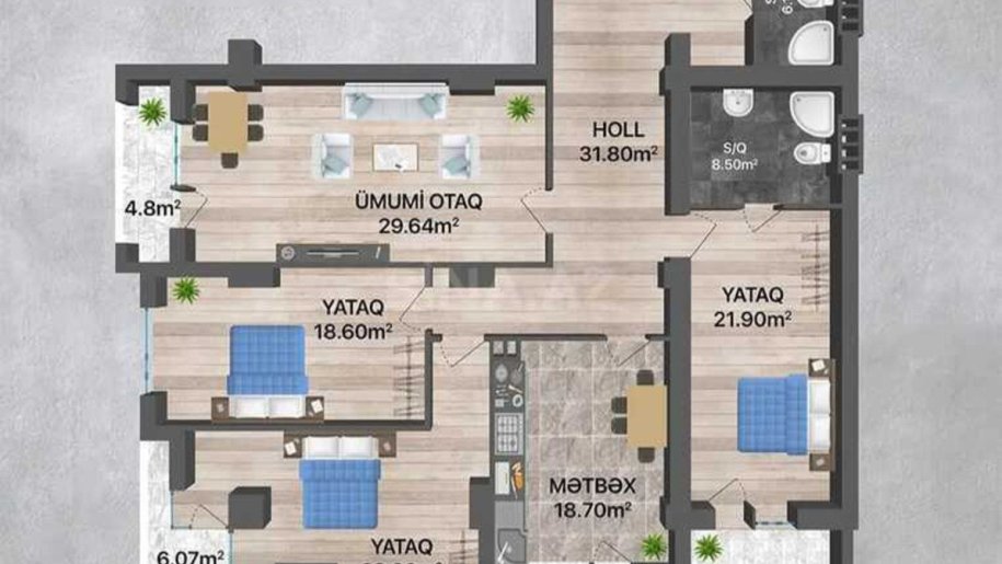 Menzilin cox gozel daxili plani var.