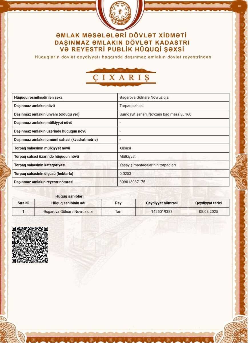 3 sot torpaq satılır, Novxanı