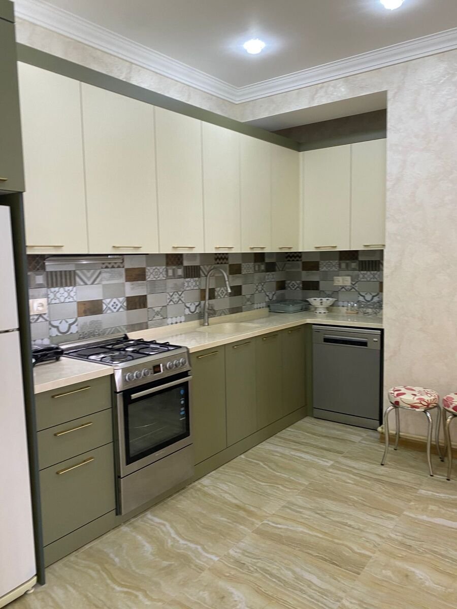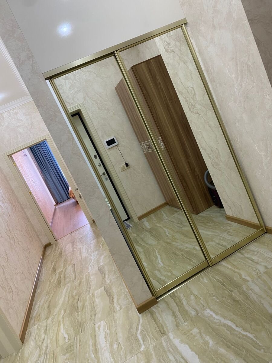 Yeni tikili, 18 mərtəbəli binanın 3-cü mərtəbəsində sahəsi 98 kv.m olan 2 otaqlı, tam super təmirli mənzil uzunmüddətli aylıq icarəyə verilir.