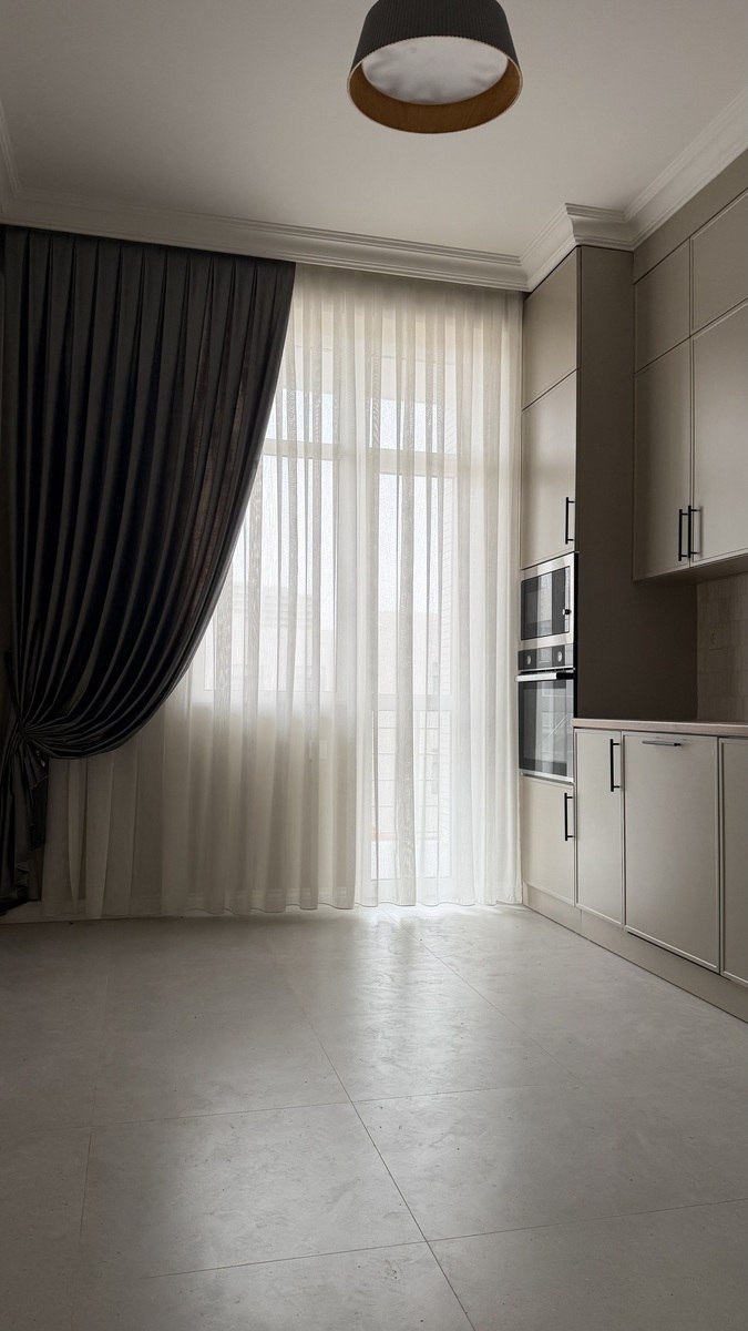 Dizayner təmiri olunub, yüksək keyfiyyətli və bahalı məişət texnikası ilə təchiz edilib: soyuducu, qabyuyan maşın, mikrodalğalı soba, soba (duhovka), plitə və aspirator quraşdırılıb.