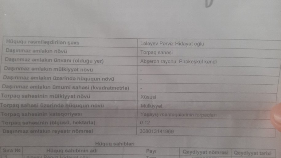 12 sot torpaq satılır, Pirəkəşkül