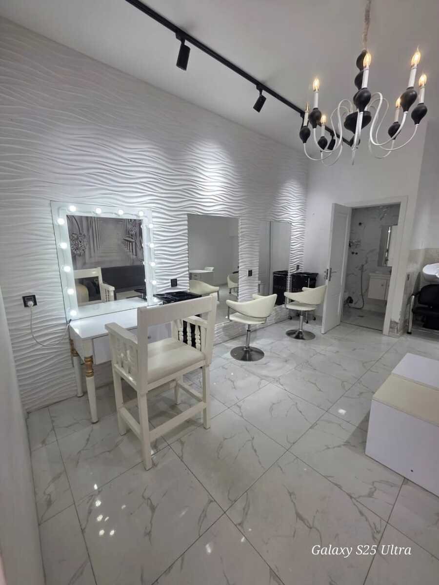 2otaqdan ibarətdir.Lazer otağı , sanitar qovşağı var.3 güzgü masası ,2 dırnağ , və başqa salona aid