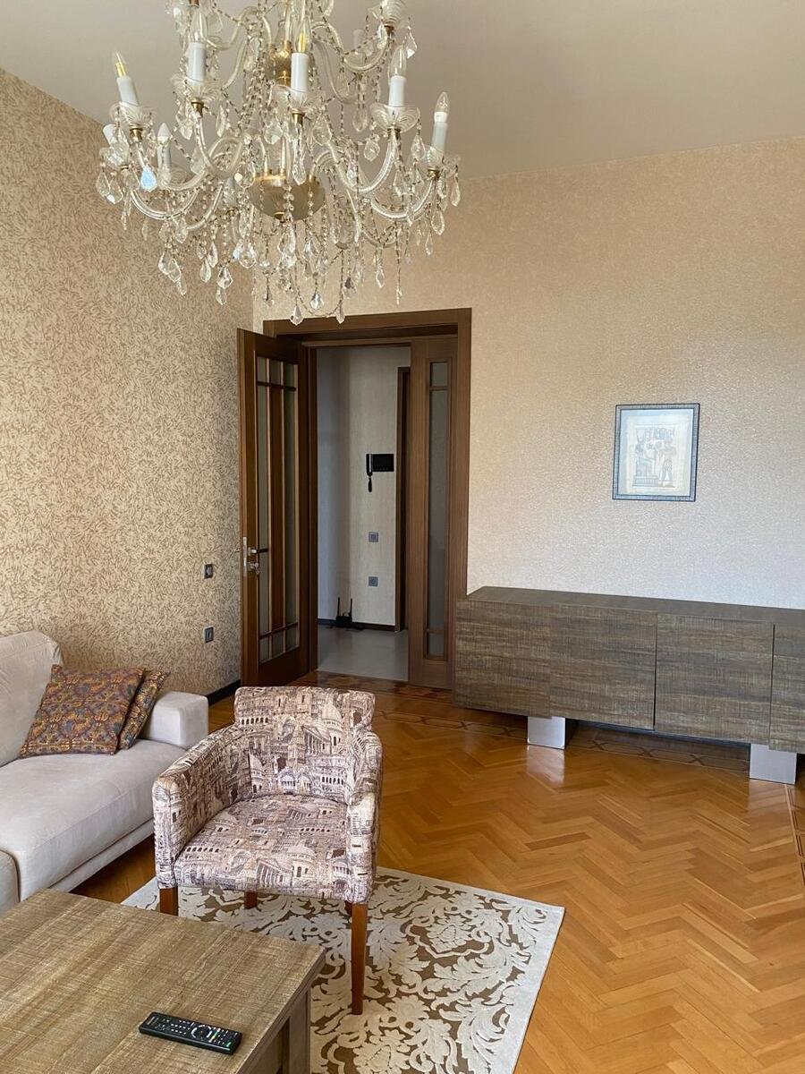 Şəhərin mərkəzində, Sahil və 28 May metrolarına piyada məsafədə, Hökumət Evinin yaxınlığında yerləşən Stalinka layihəli binanın 5 mərtəbəsinin 3-cü mərtəbəsində 3 otaqlı, 90 m² sahəsi olan tam təmirli mənzil kirayə verilir. Mənzil işıqlı, səliqəli və rahat planlamaya malikdir, yüksək tavanlar geniş və komfortlu yaşayış imkanı yaradır. Bina sakit və elit qonşuluğu ilə seçilir. Metro, bulvar, ofislər və müxtəlif iaşə obyektlərinə yaxın olması mənzili həm rahat, həm də prestijli edir. Aylıq kirayə qiyməti 1300 AZN-dir. Ətraflı məlumat və baxış üçün əlaqə saxlaya bilərsiniz.