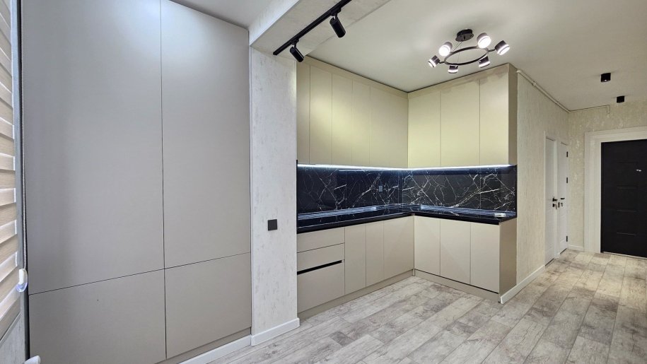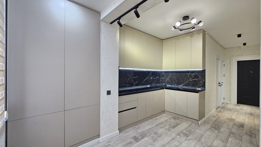 🏡 Mənzilin təmiri və şəraiti idealdır. Mətbəxdə divar boyu və tavana qədər mətbəx mebeli yığılıb. Keramoqranit hissələr isti poldur. Zövqlü təmir edilib.