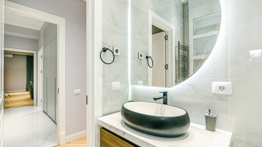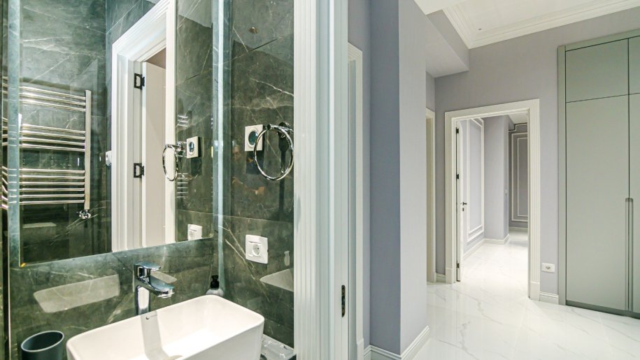 Mənzildə hamam aksesuarları rəsmi Grohe. Keyfiyyətli mətbəx avadanlığı və digər otaqlarda mebel.