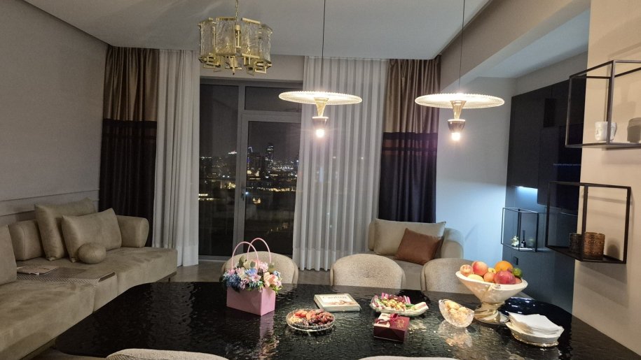 "Gümüş Rezidens " yaşayış komleksində prestijli ərazidə,mərkəzdə ,dəniz mənzərəli 2 otaqlı 115 kv yeni təmirdən cıxmış mənzil.Mənzilin 1 balkonu və 1 geniş terrası , 2 sanuzeli ,tam əşyalıdı və binada 3 dənə 24 saatlıq mühafizə və təhlükəsizlik postu ,fitnes zalı, saunası, türk hamamı, şəxsi parkovkası var.İçəri şəhər metrosu,Dağ üstü park, Şəlalə parkı,Axundov parkı ətrafında yerləşir.Mənzil gündəlikdə kirayə verilə bilər .