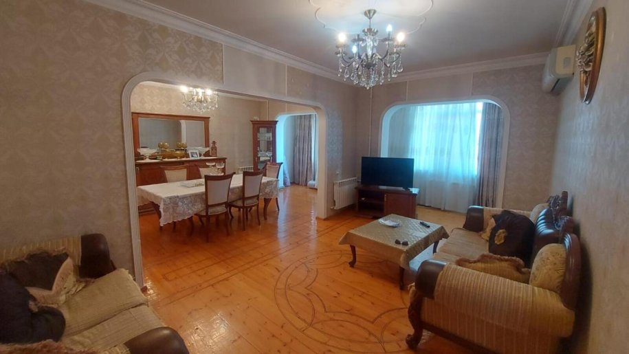 Mənzil qanuni 5 otaqlıdır, hazırda 2 otağın arası açılaraq daha geniş və funksional zal görnüşü yaradılıb (qoruyucu sütunlar saxlanılmaq şərti ilə).