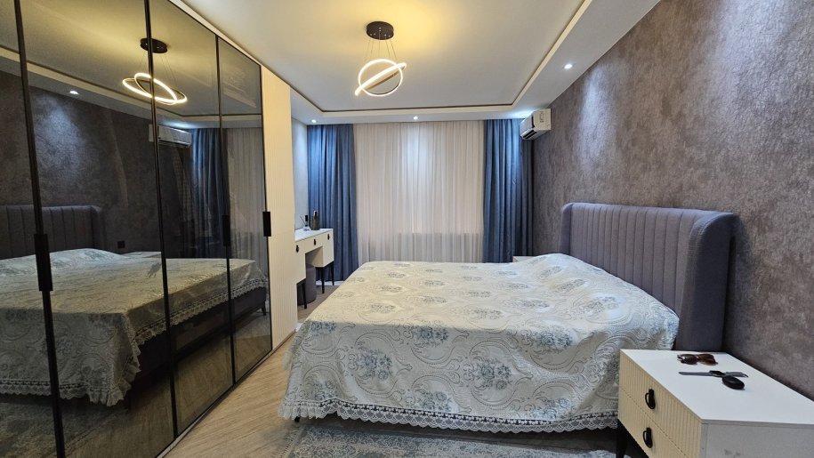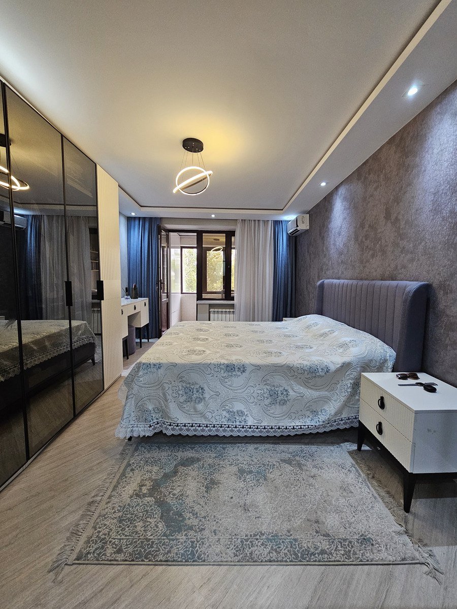 MAKLERLƏR VƏ VASİTƏÇİLƏR NARAHAT ETMƏSİN! Öz mənzilimdir. Çox keyfiyyətli materiallarla təmir olunub. Makler remontu deyil. Mənzil çox yaxşı lokasiyada yerləşir. İnşaatçılar və Elmlər metrosuna 6-7 dəqiqə. Dəqiq ünvanı xəritədə işarələmişəm. Sakit məhəllə, sakit qonşular. 5-ci mərtəbə olsa da, binanın damı dövlət tərəfindən çardaqla örtülüb. Yəni, damma və sair hallardan söhbət gedə bilməz. Sənəd kupçadır. Ümumi sahə 80 kv-dır. Qanuni 3 otaqdır. Qaz, su, işıq daimidir. Mətbəx, hamam, koridor isti poldur. Hər otaqda kombi radiatorları var. Skvoznoy (yelçəkən) mənzildir. Həm həyətə, həm prospektə geniş pəncərələr açılır və günəşə baxır. Balkonu bağlayıb iş otağı etmişəm, orada da radiator var. Yazdığım qiymət mənzilin ƏŞYASIZ qiymətidir. Əşyalı qiymət 225 000 AZN-dir. Əşyalar dedikdə, soyuducu, televizor və elektrik sobasından başqa gördüyünüz bütün əşyalar qala bilər. Whatsapp ilə yazmağınız arzuolunandır.