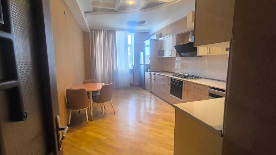 Mənzilin quraşdırılmış mətbəx mebeli, eyvanı, kombi sistemi, cakuzi vanna, duş-kabinası və s var.
