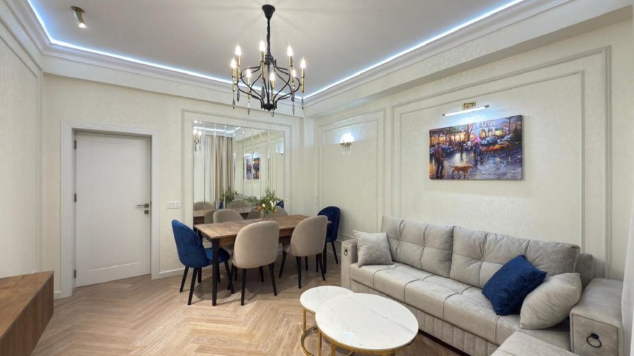 Mənzil sözün əsl mənasında olduqca keyfiyyətli təmir olunub.Döşəmədə parketdən istifadə olunub.Otaqlar geniş və işıqlıdır.Qarşısı açıqdır heç bir bina kəsmir.