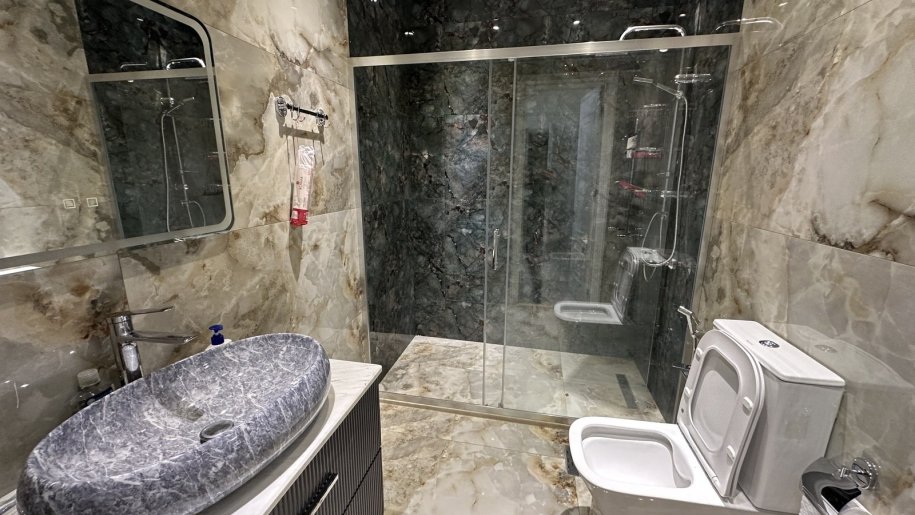 Mənzildə 2 hamam otağı mövcuddur və hamamlardan biri master yataq otağının daxilindədir.