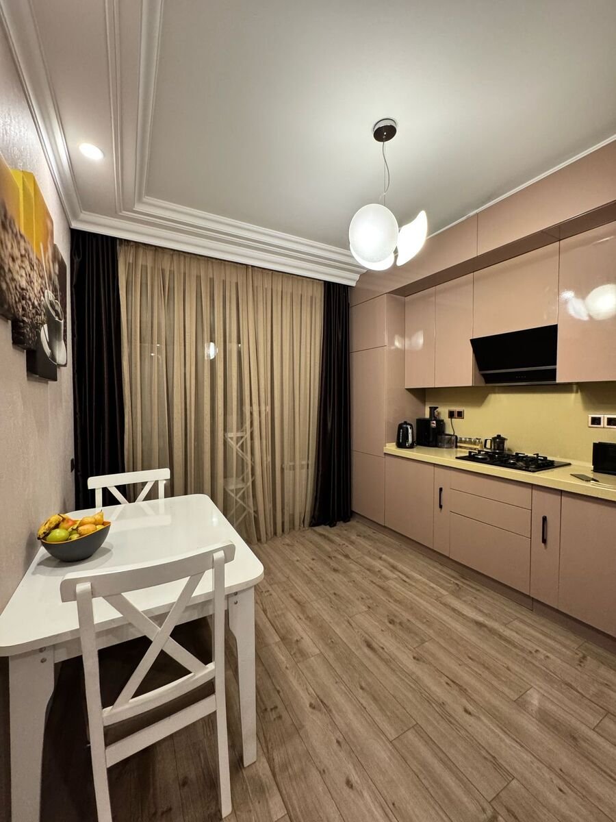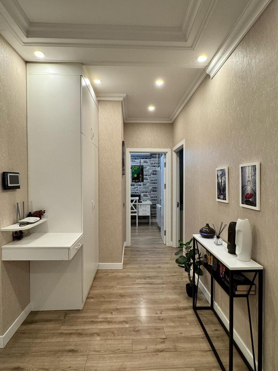 Təmir zamanı yalnız keyfiyyətli və bahalı materiallardan istifadə olunub, mənzil xüsusi dizaynla təmir edilib. Mebellər və məişət texnikası premium keyfiyyətlidir.