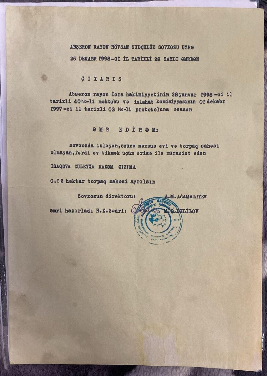 Binə savxozda 9 sot hasarlı darvazalı işiğ şocciki olan torpağ satılır sotu 4 min real alcıynan razılaşmaq olacağ sənədlər qaydasındadı
