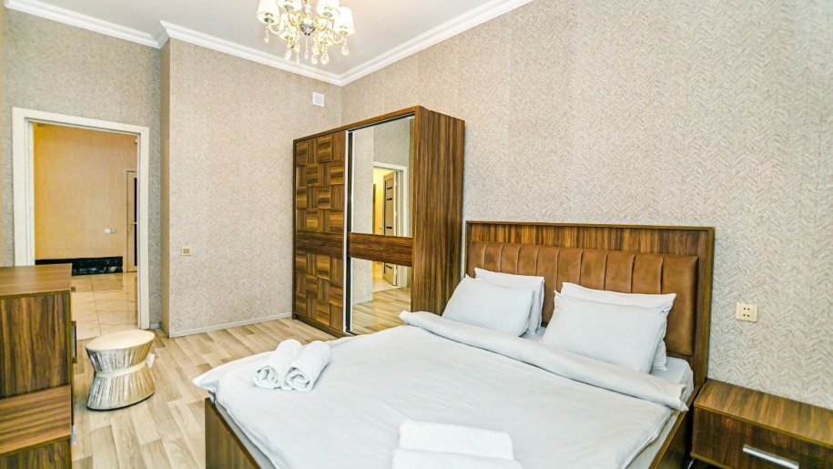 Насиминский район, в 2-х минутах ходьбы от метро «28 Мая», в элитном жилом комплексе сдаётся 4-х комнатная квартира. Этаж 11/22. Общая площадь 140 кв.м., 2 открытых балкона. 2 с/у, душевая кабина. Отличный ремонт. Раздельные комнаты. Пол (паркет). Гостиная и спальная мебель. КТВ, интернет-wifi, плазменный телевизор, 4 сплит-кондиционера. Просторная встроенная кухня с бытовой техникой. Коммуникации 24 часа. Охраняемый двор, 2 скоростных лифта, парковочные места, подземный гараж