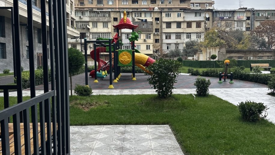 Geniş yaşıllıqla əhatəli həyətyanı sahəsi var. Parking problemi yoxdur.
