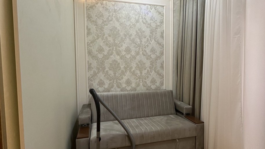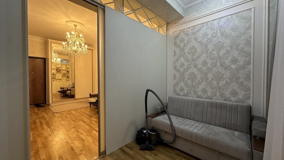 Qonaq otağı bölünərək kiçik yataq otağı düzəldilmişdir. Şəkildəki transformer divan açılaraq yataq olur. Ortapedik döşəkli divandır.
